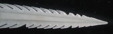 針が鋭いギザギザのノコギリのような形状になっており、長靴やゾウリなんかも簡単に貫通してしまいますので、水際に立ちこむときには注意が必要です。