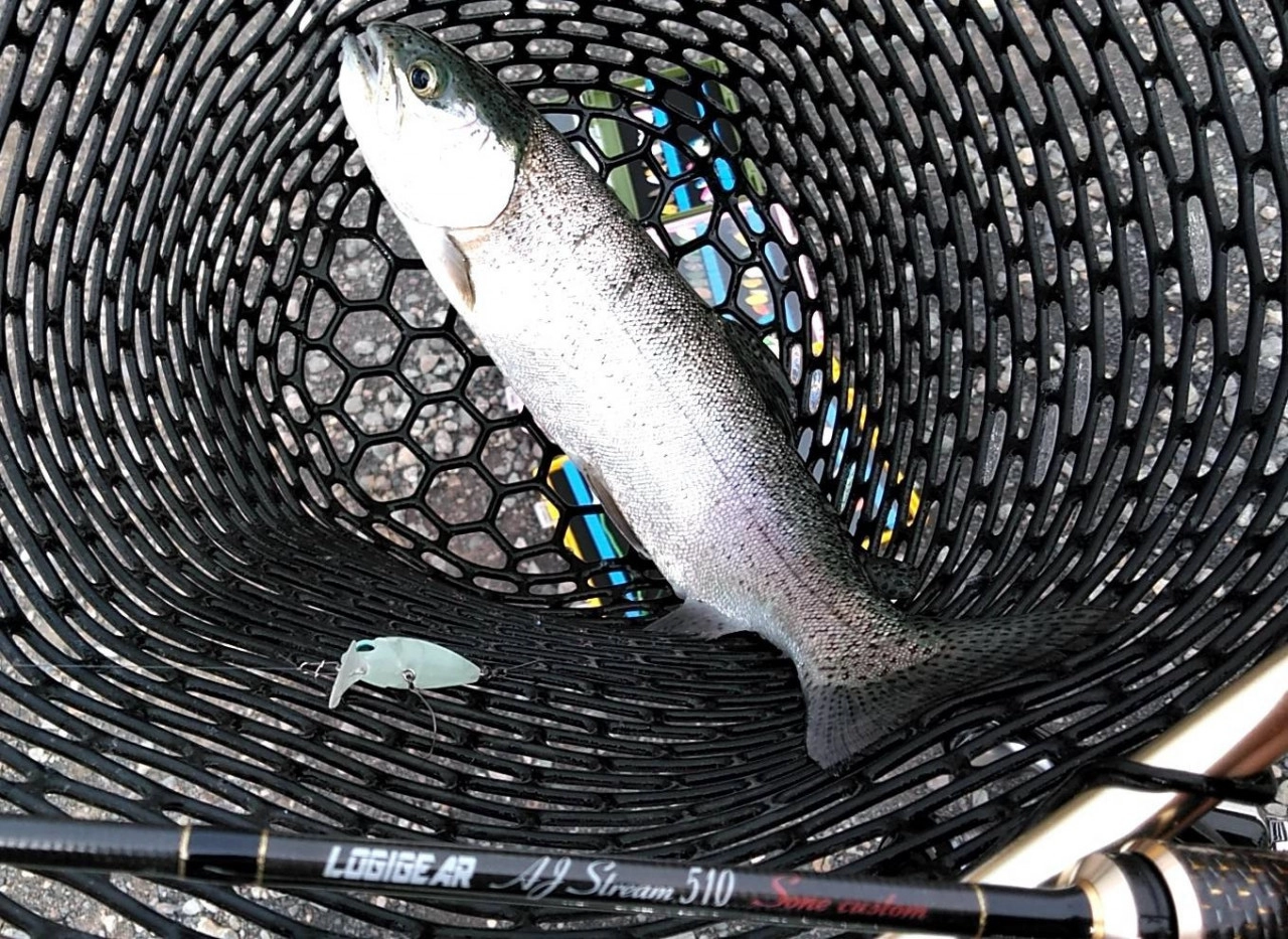 今回は、オリジナルロッド【AJストリームソネカスタム510】を使ってトラウトを釣ることが出来ました。
