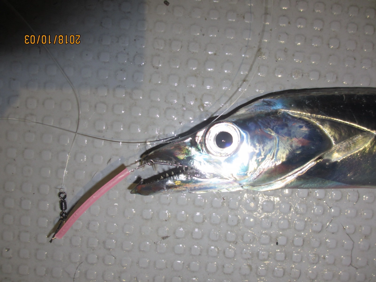 結果はタチウオ 指2本~3本サイズが4本、メイゴ2匹・・・ちーん 撃沈でした。