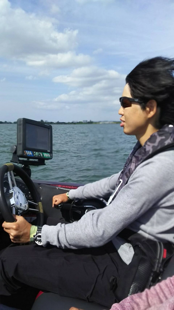 移動中はボート、エレキの操縦やボートの操船も体験^^