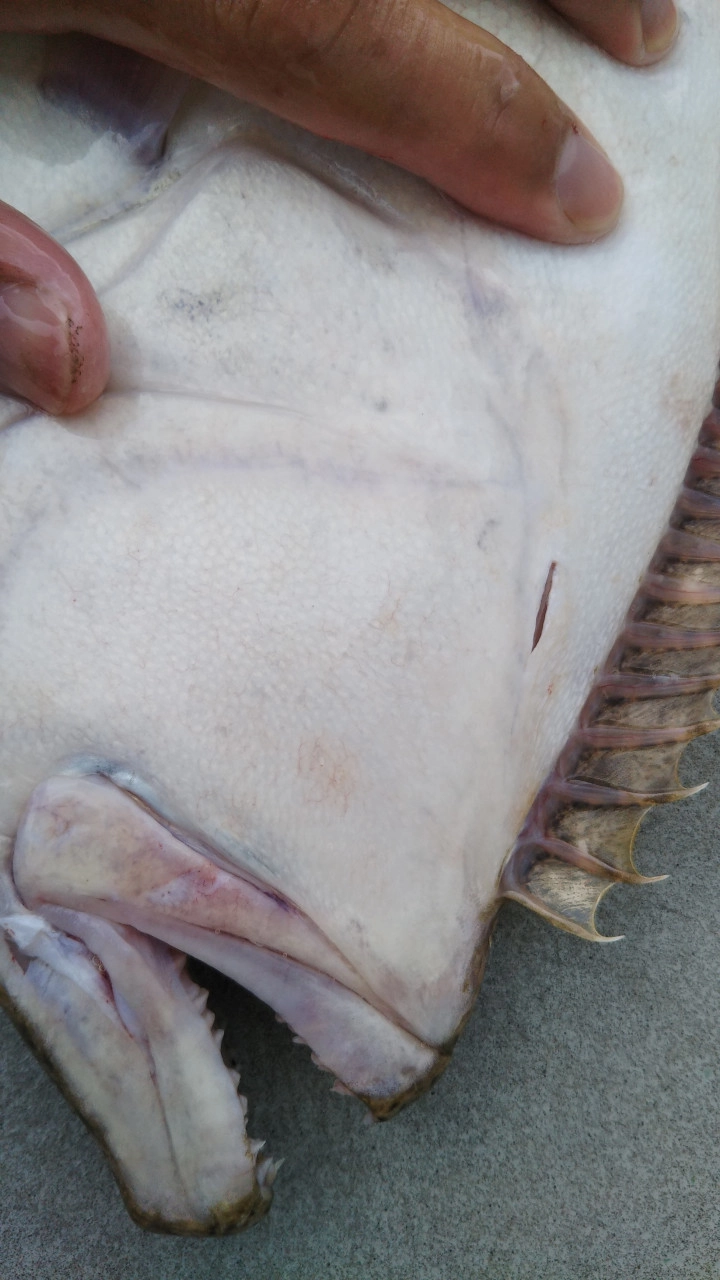 ヒラメは写真の骨との境目に切り込みを入れ、