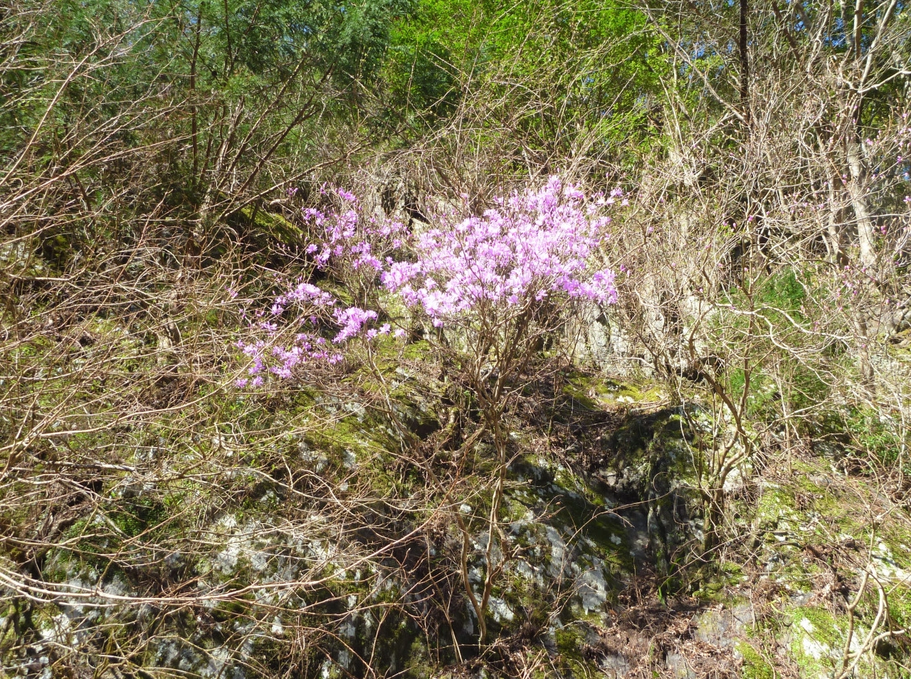 春の渓流はあちこちで花が咲き、またカモシカなどの動物たちとの遭遇もあり