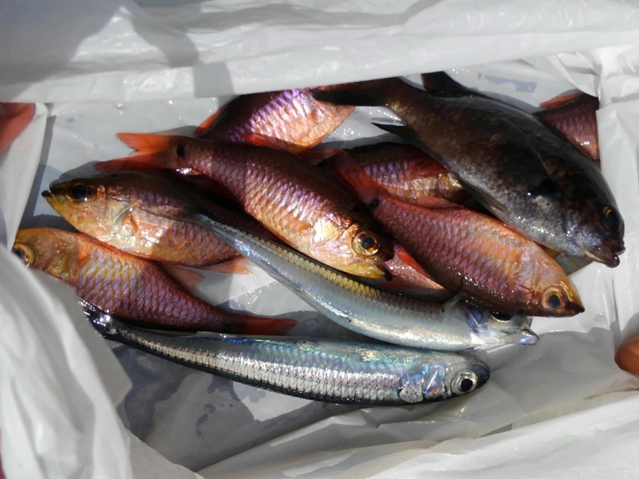 トウゴロウイワシ、スズメダイ、ネンブツダイ、がたくさん釣れていました!