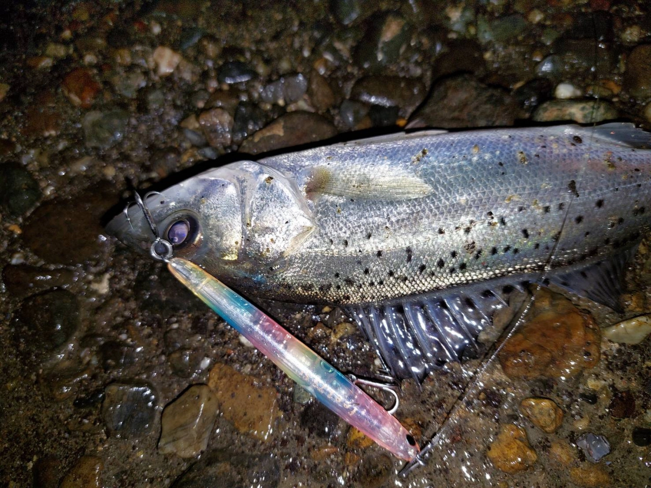 非常にルアーが軽量なので、ほぼ巻かずに流れに任せてドリフトするとすぐ当たってきます。