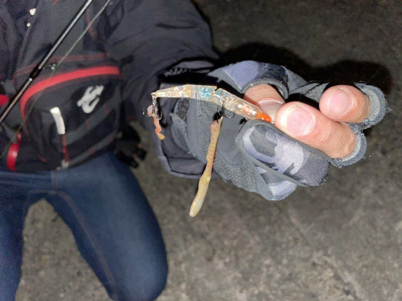 おお~ バチくっついてきましたね!! 肝心のシーバスは釣れず・・・(笑)