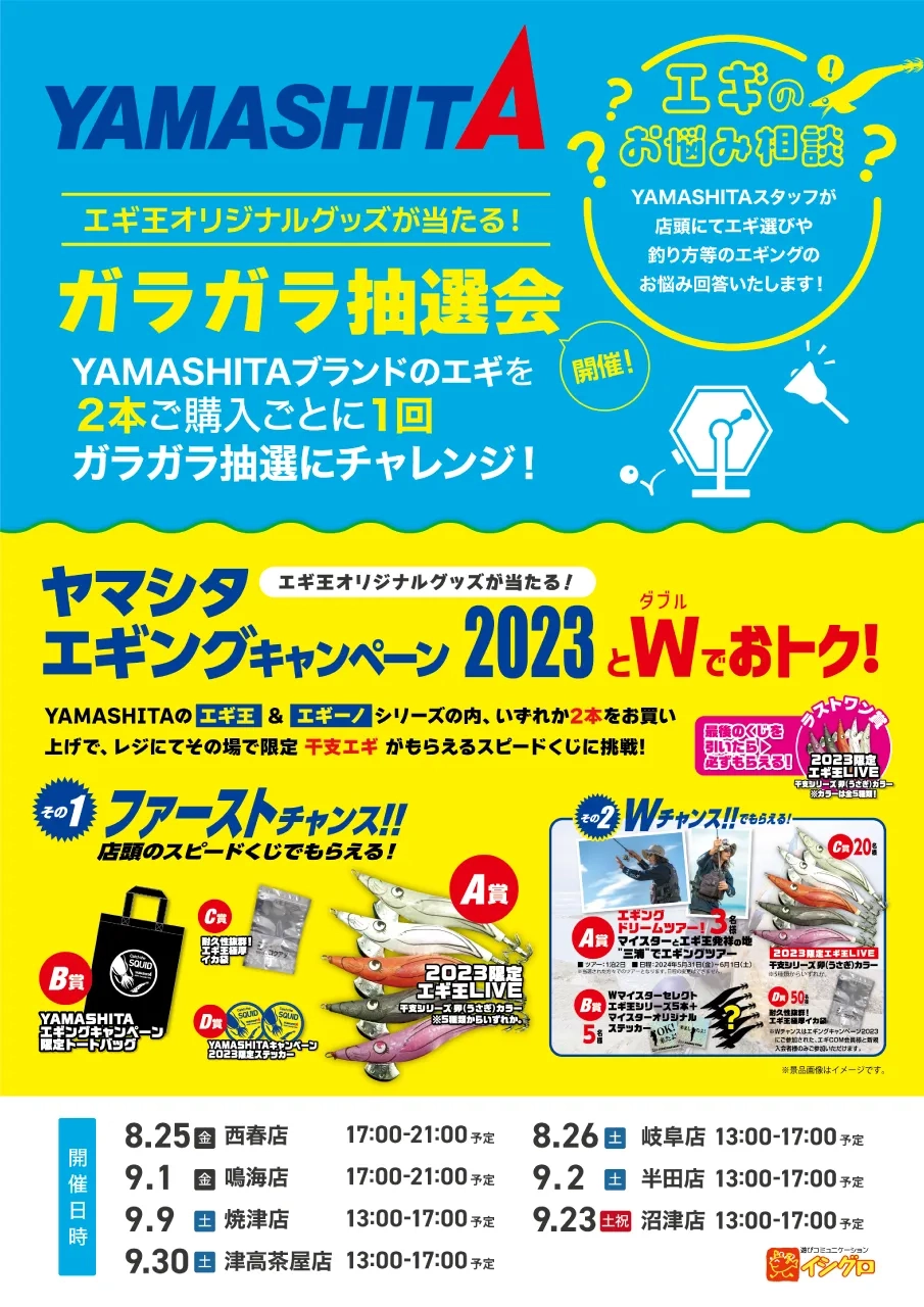 また、イベント当日はヤマシタのスタッフ様にご来店頂き、店頭にて釣り方やエギ選び等のアドバイスが聞けちゃいます!!