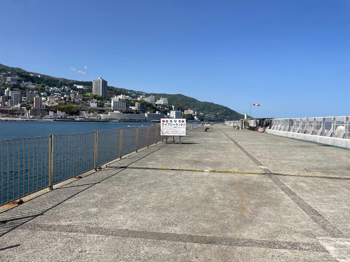 熱海港海釣り施設は全長300mに近い大型の堤防。堤防全体が柵で覆われて有料の海釣り公園として開放されています。内側のみ釣りが可能です。