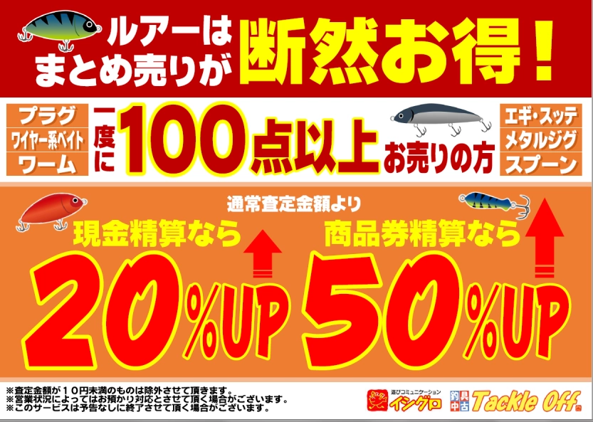 ※一度のレジ精算に対しての適応となります。※イシグロとタックルオフの合算はできません。※一部除外品がございます。