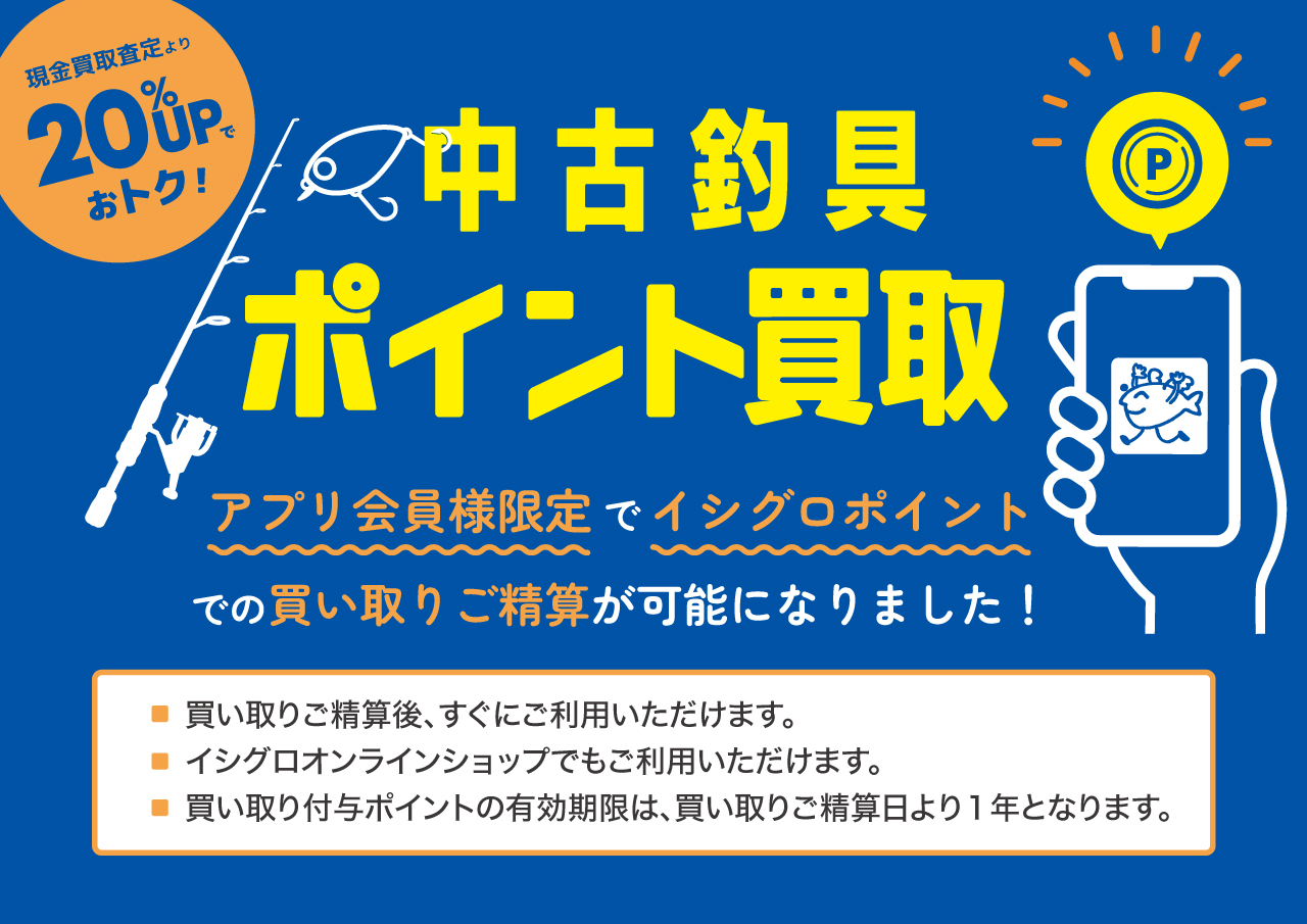 ※中古のロッド・リールにもご利用いただけます。※1回のお買い物なら複数の商品にご利用いただけます。※イシグロとタックルオフの合算はできません。※他のポイント割増企画との併用はできません。