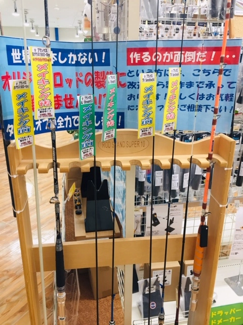 ロッド製作を始めてみたい方にオススメのスターターキットの販売や、オリジナルロッドの展示も行っています♪