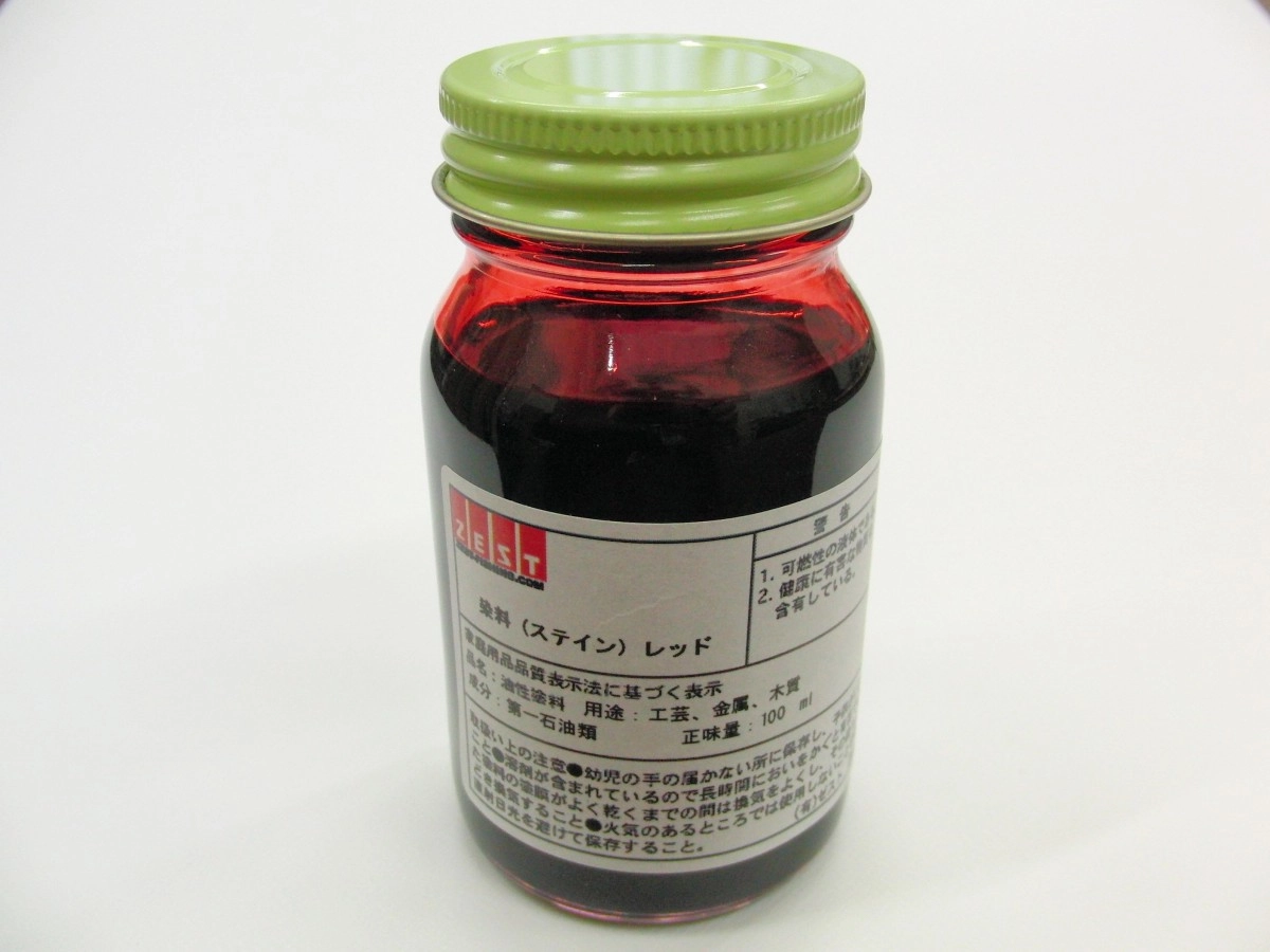 ここでもZESTさんの塗料「ステイン(レッド)」を使用します。