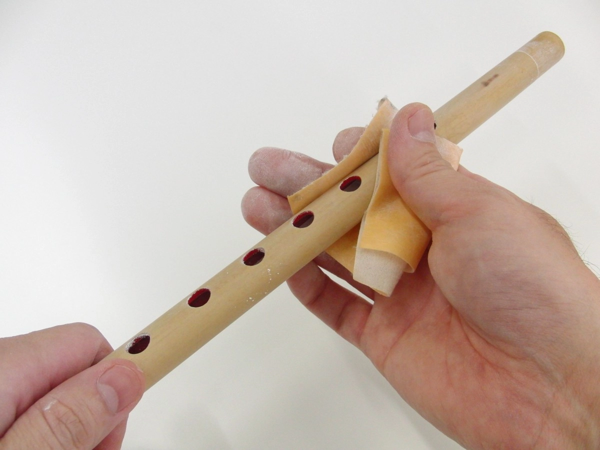 とりあえず笛の中に塗料が入らないように紙を差し込み、さらに各穴にも写真のように紙を丸めて差し込んでおきます。