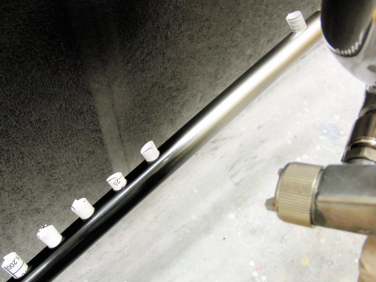 黒でなくてもいいですが、表面の状態が確認しやすかったり、シルバーを塗るときのムラを見つけやすかったりするのと、ネームを貼るエンド部分も黒に塗る必要があったため今回は黒にしました。