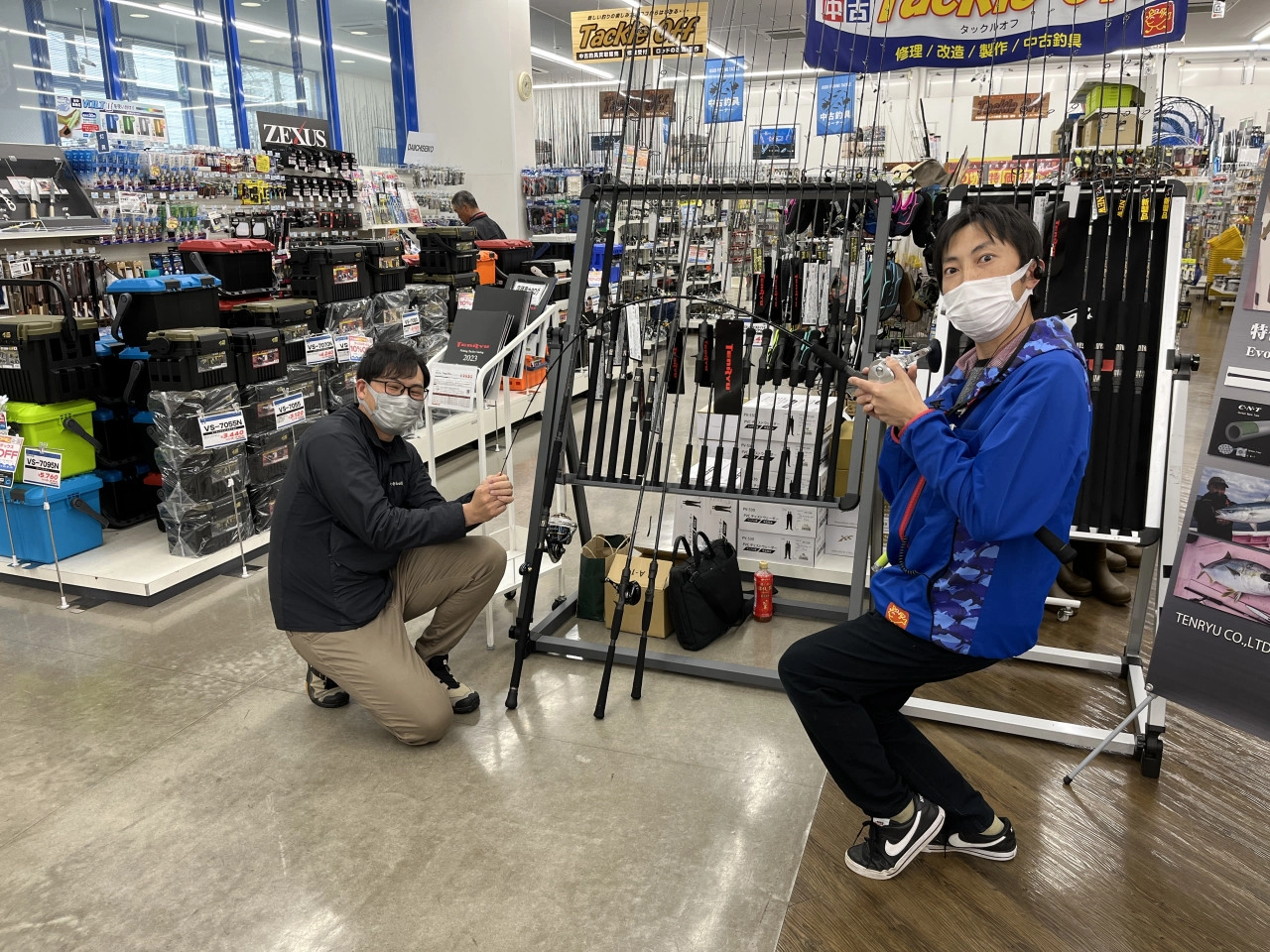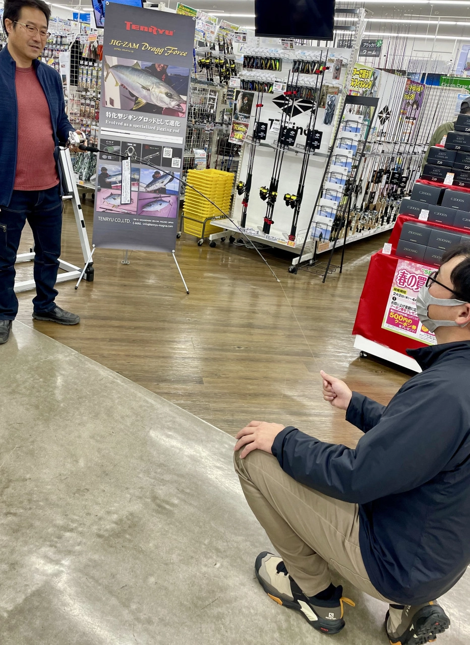 新製品ドラッグフォース等の竿の解説やぶち曲げ体験など