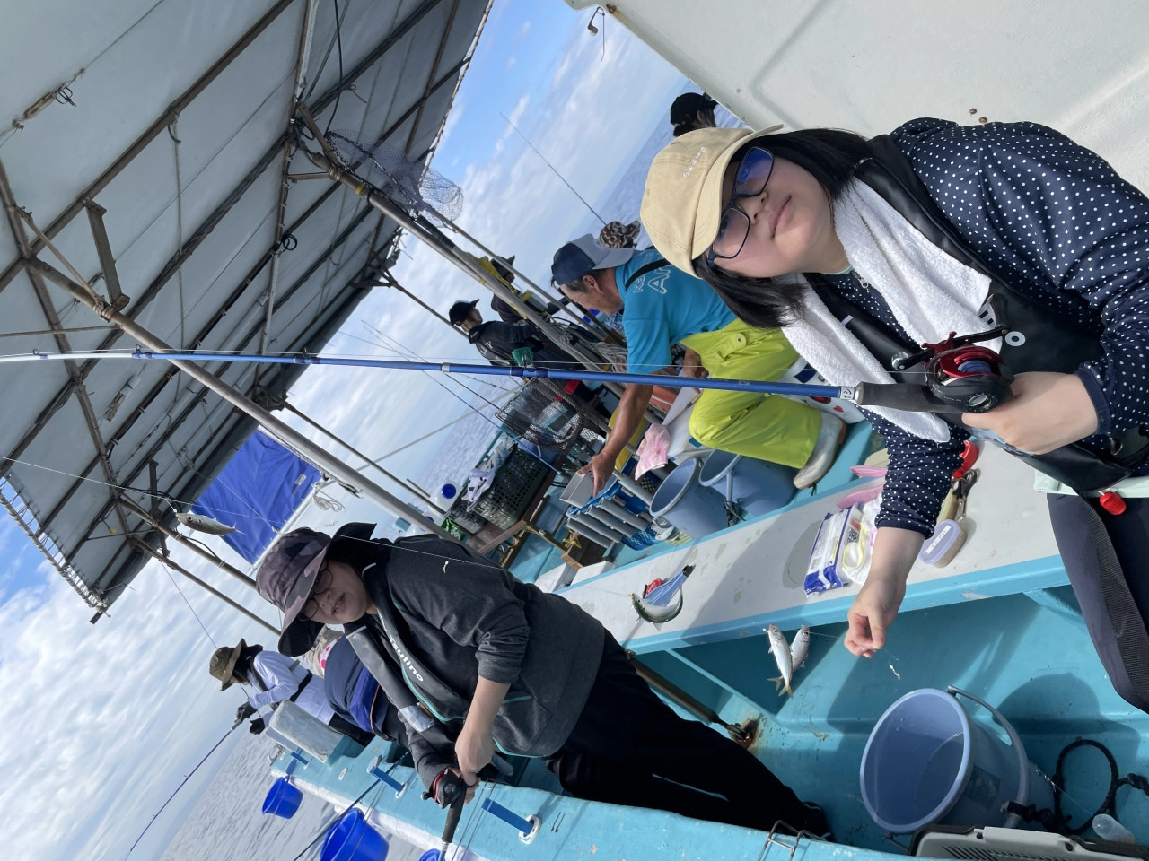 日除けテント、さらには水洗トイレ完備のかもめ釣船さんは女性の船釣りデビューにもってこい!