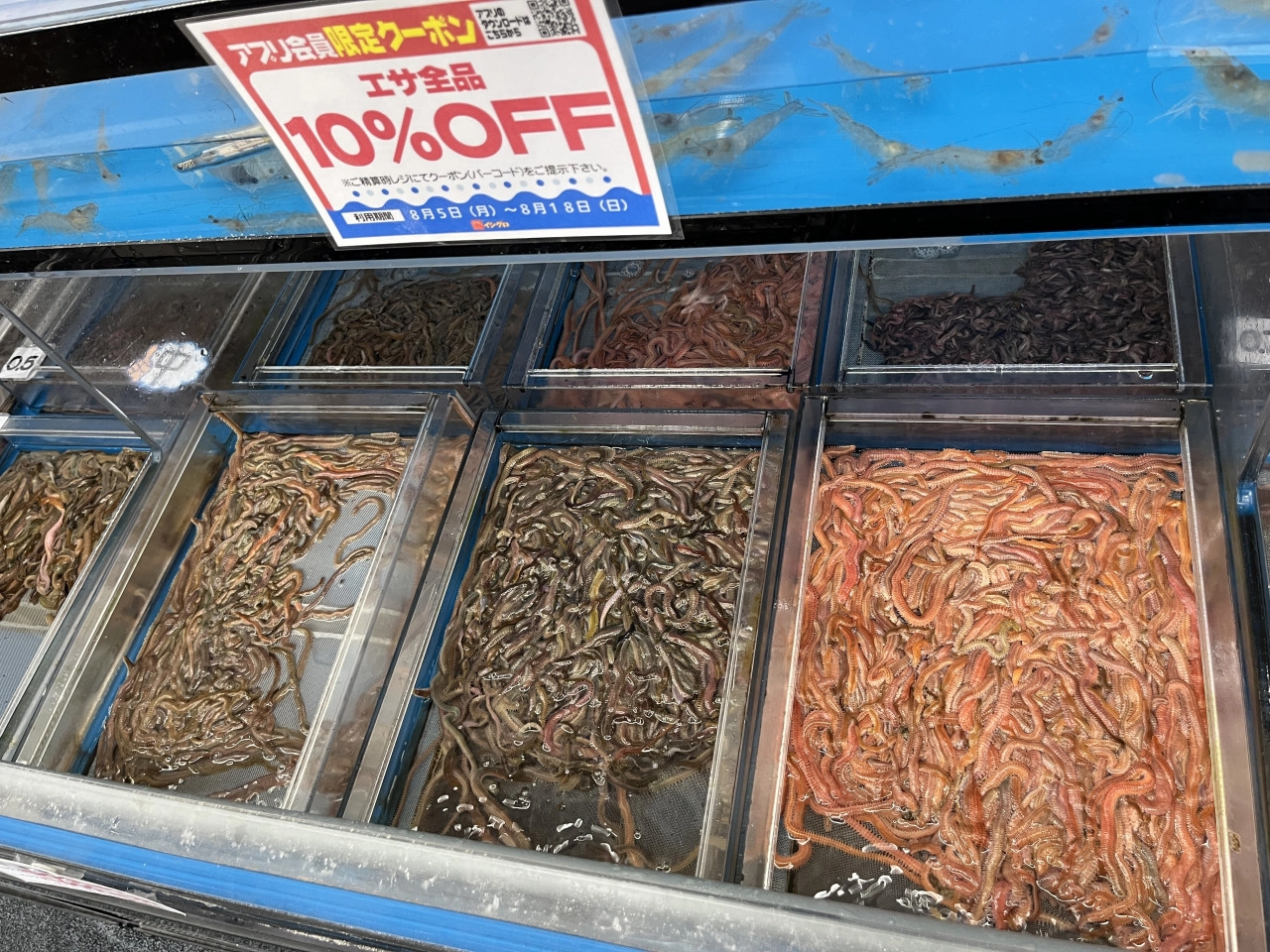 エサ全品は、粉エサから活きエサまで全品10%オフです!!