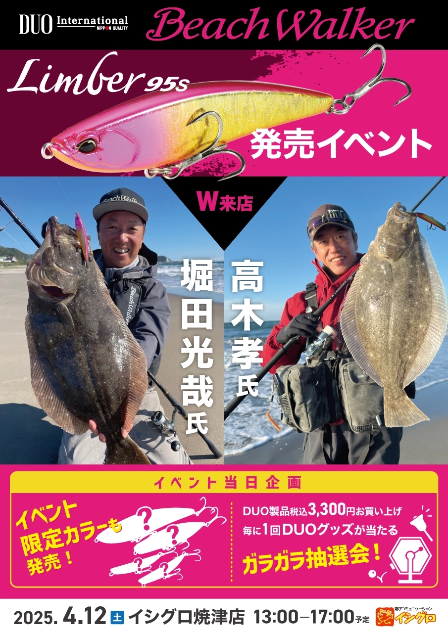 ※リンバー95S及びイベント限定カラーのルアーに関しては、当日10時の回転時に整理券を配布させていただきます。