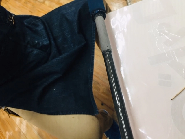 コアテープと呼ばれるテープでEVAグリップとカーボンパイプの隙間を埋め、ガタツキがない様に調整して接着していきます。