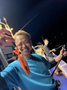 8/12に仲間と浜名湖ナイトゲームに行って来ました。 数年前から仲間内で流行っている、クロダイ等のチヌに効果抜群のシンペンによるボトムドリフトでの釣行。 先ずは飛距離抜群のシマノ トライデント60s マットピンクで釣りスタート! 早々アタリが頻発し、開始10分で35cmのクロダイキャッチ。 ポイント潮止まりの22時までに計6枚の35〜40cmのクロダイをキャッチ! 30程の潮止まり休憩を挟み、下げ潮の釣り開始。 クロダイに時折キビレが混じり、14匹目には50cmのマゴチも登場し、15匹で終了しようと粘りますが、只々重い魚がヒットして、まさかのエイ⁉︎がヒットしましたが、ファイト中に無事フックアウトして頂いたので、釣り終了としました。 僕は計14匹キャッチですが、資源保護とストリンガーが5匹までしかキープ出来ないので、選抜して4匹のクロダイとコチを持ち帰り。 この時期のこのポイントのクロダイは、とてもコンディションが良く、脂もノリノリ! 内臓脂肪まてラード状の脂肪がたっぷりでした。 僕が愛用しているトライデント60sは、ボトム検知能力の優れ飛距離もダントツ! フックをテール側にシングルフックを1〜2個セットし、根掛かり対策もバッチリ! バラしやフック率を上げたいなら2本がオススメです。