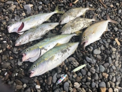 釣行日 2018/08/21 釣行時間 03:00~08:00 釣場 東海 > 静岡東部 > 沼津市海岸 ポイント 片浜 釣り方 ショアジギング 釣魚 カンパチ・ ソウダ 釣果 カンパチ1匹、ソウダ3匹 サイズ カンパチ35cm、ソウダ30cm