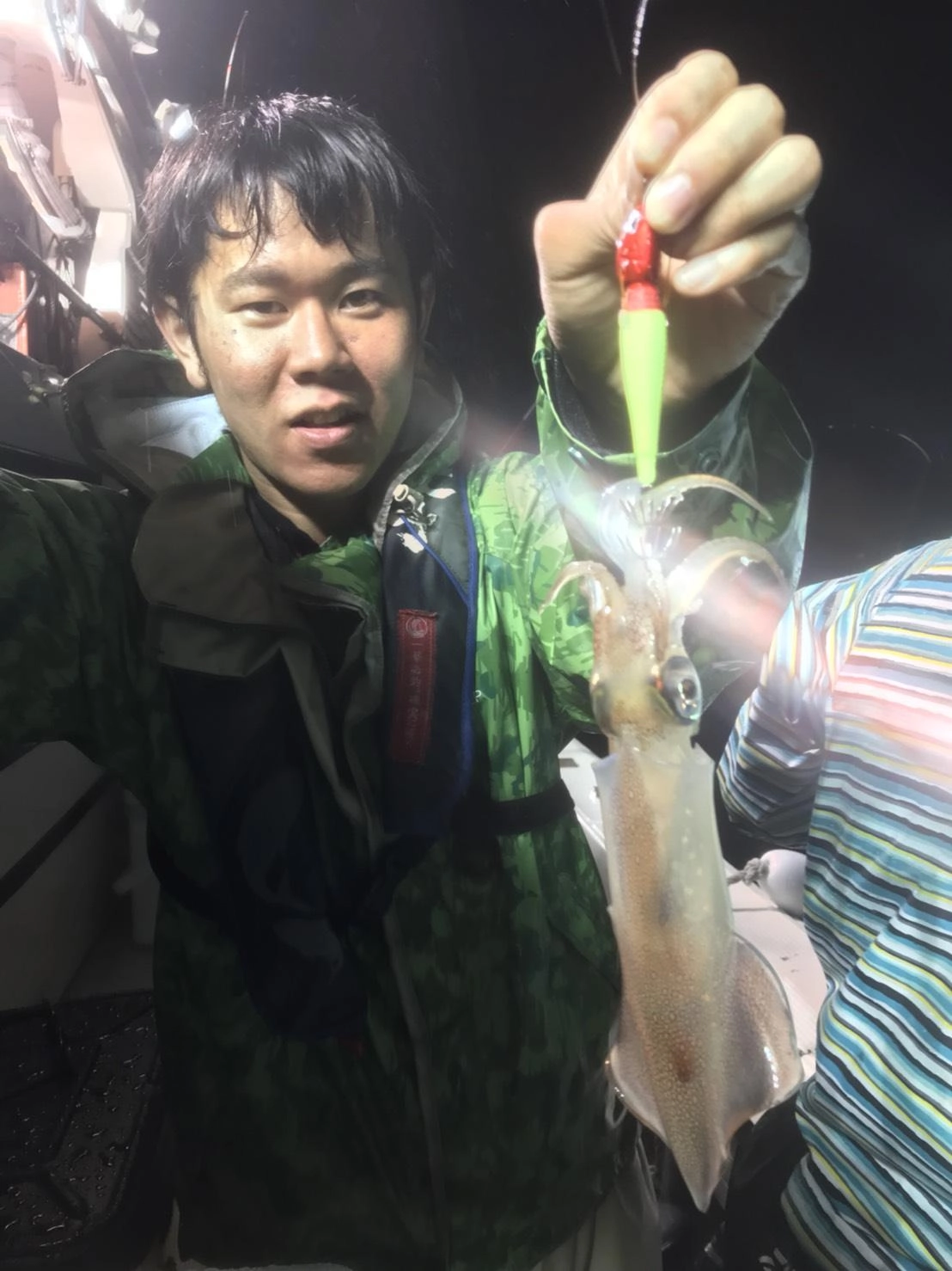 写真左の僕にはスペシャルゲストのミニチュアタルイカが釣れました‼