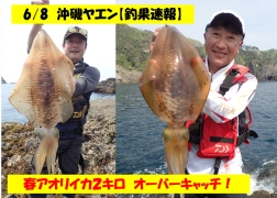 同じ釣魚の記事 K1 908 view コマセ無し投げサビキで釣ったイワシをロデオ針(S)泳がせでアオリイカ、テンヤで太刀魚 アオリにはやっぱり鰯だった。鰯が渋く餌持ちUPの包ワーム欲しいな。太刀は大きく自作改造テンヤの針が曲がってしまった。 釣行日 2021/07/08 釣行時間 17:30~19:30 釣場 沼津市海岸 ポイント 釣魚 アオリイカ・タチウオ・イワシ 釣り方 その他 釣果 アオリイカ1、タチウオ2、イワシ6 サイズ アオリイカ胴長20弱、タチウオ最大指6本、イワシ15 K1 1,518 view コマセ無し投げサビキで釣ったイワシをロデオ針(S)泳がせでアオリイカ・太刀魚、テンヤで太刀魚 死にウルメイワシを背掛けで頭にロデオ針付けて水面プカリでアオリイカ。マイワシ泳がせで太刀魚。テンヤは2バラシ1ゲット。 釣行日 2021/07/05 釣行時間 17:30~20:30 釣場 沼津周辺 ポイント 釣魚 アオリイカ・タチウオ・イワシ・サバ 釣り方 その他 釣果 アオリイカ1杯、タチウオ2匹、イワシ10匹、サバ4匹 サイズ アオリイカ胴長30cm、タチウオ指4本、イワシ15cm、サバ15cm イシグロ伊東店 2,199 view 【イシグロ伊東店】南伊豆堤防、ヤエン釣りでアオリイカ釣れました。 早朝から昼までの釣行 掛かるアオリイカが小型になり、数が少なくなってきた。 シーズン終了間近かも? 釣行日 2021/06/30 釣行時間 04:00~13:00 釣場 南伊豆周辺 ポイント 南伊豆堤防 釣魚 アオリイカ 釣り方 ヤエン 釣果 アオリイカ2杯 サイズ アオリイカ0.6~1Kg イシグロ豊川店 1,724 view ★豊川店★三河湾ボートエギング&タコエギング♪ 佐野・神谷釣行♪何とかアオリイカGET♪ヒットエギは【エギ王K3.5号 モエモエグリーン】。スレイカにオススメカラー♪ 釣行日 2021/06/29 釣行時間 04:00~12:00 釣場 沖・オフショア ポイント 三河湾 釣魚 アオリイカ 釣り方 エギング 釣果 アオリイカ2杯 サイズ アオリイカ800g~1㎏ イシグロ三河安城店 1,453 view イシグロ知立店 ボートエギング・マゴチ狙いに行って来ました♪ テンフィートアンダーソルトの伊豫部様にお世話になってきました!アオリ・マゴチ釣るなら今ですよ! 釣行日 2021/06/28 釣行時間 05:30~10:00 釣場 沖・オフショア ポイント 苅谷港出船 テンフィートアンダーソルト様 釣魚 アオリイカ・マゴチ 釣り方 エギング 釣果 アオリイカ5匹、マゴチ7匹 サイズ アオリイカ~1kg、マゴチ30~60cm イシグロ御殿場店 1,160 view 御殿場店 お客様釣果情報!!アオリイカ釣れました! アジの泳がせ釣りでの釣果です。朝からの釣行でアオリイカを釣ることができました!1㎏未満のアオリイカの釣果が安定しています。 釣行日 2021/06/25 釣行時間 06:00~12:00 釣場 沼津周辺 ポイント 沼津市内堤防 釣魚 アオリイカ 釣り方 ウキ釣り(海) 釣果 アオリイカ1杯 サイズ アオリイカ700g前後 イシグロ中川かの里店 1,185 view 10ftアンダー常滑周辺エギングガイド!!【中川かの里店】春アオリイカ エギ王K、パタパタでの釣果です。アマモエリアでは緑系がおすすめです!! 釣行日 2021/06/23 釣行時間 05:00~09:00 釣場 沖・オフショア ポイント 釣魚 アオリイカ 釣り方 エギング 釣果 アオリイカ合計3匹 サイズ アオリイカ~約1kg イシグロ駿東柿田川店 1,213 view 沼津湾内ティップランでアオリイカ! ヤマハマリーナ沼津さんのレンタルボートを利用しての釣行。エギはダートマックスTR30gBKパープルボーダーパープルを使用。 釣行日 2021/06/23 釣行時間 10:00~03:00 釣場 沖・オフショア ポイント 沼津湾内 釣魚 アオリイカ 釣り方 ティップランエギング 釣果 アオリイカ1杯 サイズ アオリイカ700g イシグロ伊東店 1,486 view 【イシグロ伊東店】速報 スタッフ菊間ヤエン釣行 2キロオーバーアオリイカ釣れました! 本日スタッフ菊間ヤエン釣行!今回も2キロオーバーアオリイカ釣れました!0.8㌔2杯、1.1㌔2杯、2.32㌔ 計5杯釣れました。 6回ヒット5回キャッチだったそうです! 釣行日 2021/06/23 釣行時間 05:00~15:00 釣場 南伊豆周辺 ポイント 南伊豆堤防 釣魚 アオリイカ 釣り方 ヤエン 釣果 アオリイカ5杯 サイズ アオリイカ0.8㌔~2.32㌔ イシグロ駿東柿田川店 3,660 view 【お客様釣果情報】西伊豆で良型アオリイカ! 前田様より釣果情報頂きました。西伊豆ヤエンで2キロのアオリイカをGET!おめでとうございます♪ 釣行日 2021/06/20 釣行時間 05:30~17:00 釣場 西伊豆周辺 ポイント 釣魚 アオリイカ 釣り方 ヤエン 釣果 アオリイカ1杯 サイズ アオリイカ2㎏ イシグロ御殿場店 879 view 御殿場店 アオリイカ釣果情報!! お客様より釣果情報頂きました!エギ王K3.5号スケスケキャンディーで良型のアオリイカが釣れました!一投目でヒットしたそうです! 釣行日 2021/06/17 釣行時間 18:00~18:30 釣場 沼津周辺 ポイント 沼津市内堤防 釣魚 アオリイカ 釣り方 エギング 釣果 アオリイカ1杯 サイズ アオリイカ1.2㎏ イシグロ半田店 1,890 view 【スペシャルゲストも!?】今が激アツ!!!知多半島ボートゲーム!!!◎イシグロ半田店◎ いつもお世話になっている10FTUソルトで出撃!!アオリかもまだまだ絶好調!!!まさかまさかのスペシャルゲストも登場!! 釣行日 2021/06/14 釣行時間 07:30~12:00 釣場 沖・オフショア ポ