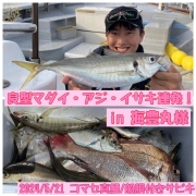 同じ釣魚の記事 イシグロ浜松高林店 220 view 胴突きサビキ コマセマダイ研修へ行ってきました。 福田港から出船。前情報で大アジが釣れているとの事だったのでハリスのバリエーションを多めに持って行きました。 釣行日 2024/05/21 釣行時間 05:00~11:30 釣場 沖・オフショア ポイント 釣魚 アジ・マダイ 釣り方 船釣り 釣果 アジたくさん、マダイ1人1~4匹 サイズ アジ15~40cm、マダイ30~70 イシグロ西春店 316 view コマセ真鯛&船サビキ釣り in 海豊丸様! 人生初のコマセ真鯛・船胴付きサビキ釣りへ福田港出船の海豊丸様へ行ってきました! 釣行日 2024/05/21 釣行時間 06:00~12:30 釣場 沖・オフショア ポイント 海豊丸様 釣魚 マダイ・イサキ・アジ 釣り方 サビキ釣り 釣果 マダイ4匹、イサキ4匹、アジたくさん サイズ マダイ~65cm、イサキ~35cm、アジ~35cm イシグロ沼津店 752 view 福田港海豊丸様にて御前崎沖マダイ、アジ釣行行って来ました!! 吹き流し釣りでのコマセマダイ、イサキ、大アジ好調です!! 胴突きサビキでのアジ数釣りでも大型含め大漁!!初心者様でも沢山釣れると思いますよ~!! 釣行日 2024/05/21 釣行時間 05:00~13:00 釣場 福田周辺 ポイント 釣魚 マダイ・アジ・イサキ 釣り方 船釣り 釣果 マダイ4匹、アジ35匹、イサキ1匹 サイズ マダイ~35cm、アジ~40cm、イサキ40cm イシグロ焼津店 379 view コマセ真鯛・胴突サビキ釣行@福田港海豊丸様【イシグロ社員研修】 60cm弱の真鯛をキャッチ!真鯛の独特の引き込みを楽しめました!初めてのロングハリスにやや苦戦しつつもプラ丸枠を使用し仕掛け絡みを防げました。 釣行日 2024/05/21 釣行時間 06:00~12:00 釣場 福田周辺 ポイント 釣魚 マダイ 釣り方 船釣り 釣果 マダイ1匹 サイズ マダイ60cm弱 イシグロ駿東柿田川店 437 view カゴ釣り行ってきました‼ タナは竿2本でハリス3mで狙いました。 釣行日 2024/05/15 釣行時間 06:00~12:00 釣場 沼津市海岸 ポイント 釣魚 マダイ・オオモンハタ 釣り方 カゴ釣り 釣果 マダイ1匹、オオモンハタ1匹 サイズ マダイ30cm、オオモンハタ35cm イシグロ鳴海店 1,087 view 竿頭は9歳少年⁉ ありもとジギング&タイラバで良型マゴチ!【イシグロ鳴海店】 伊勢湾ジギング&タイラバ、気配上向きです! ヒットカラーはオレンジが圧倒的でした! 釣行日 2024/05/11 釣行時間 06:00~13:00 釣場 その他 ポイント 釣魚 ホウボウ・マゴチ・マダイ 釣り方 タイラバ 釣果 ホウボウ1匹、マゴチ1匹、マダイ複数 サイズ ホウボウ~40㎝程度、マゴチ~50cm程度、マダイ20~40cm程度 イシグロ御殿場店 326 view 御殿場店 沼津沖マダイ好調です!! IN真正丸 ハリスは4号10mを使用しました。朝のうちは軽い仕掛けが有効で、日が差してからは重い仕掛けが有効でした。 釣行日 2024/05/08 釣行時間 05:30~10:30 釣場 沼津周辺 ポイント 沼津市 江梨港 真正丸 釣魚 マダイ・チダイ 釣り方 船釣り 釣果 マダイ4匹、チダイ多数 サイズ マダイ1.5kg前後、チダイ30cm前後 イシグロ駿東柿田川店 415 view 西伊豆ふじなみ丸でコマセマダイ釣りをしてきました! マダイの活性高いです! 特大サイズのサバが多いので仕掛けの替えは大量に持って行った方が良いと思います。 シーガー 船ハリス 4号 がまかつ 真鯛王 10号使用 釣行日 2024/05/06 釣行時間 06:00~13:00 釣場 西伊豆周辺 ポイント 安良里港ふじなみ丸 釣魚 マダイ・サバ 釣り方 船釣り 釣果 マダイ3匹、サバ多数 サイズ マダイ40㎝前後、サバ40~50㎝ 由比港 大政丸 429 view 由比港 大政丸 コマセ真鯛 難しい時間もありましたが、ポツポツ釣れました! 釣行日 2024/05/06 釣行時間 06:00~11:00 釣場 静岡・清水周辺 ポイント 三保沖 釣魚 マダイ 釣り方 船釣り 釣果 マダイ9枚〜2枚 サイズ マダイ2kg級、3kg級! 由比港 大政丸 360 view 由比港 大政丸 コマセ真鯛 連日、反応バリバリ!釣果に差が出てしまいます… 釣行日 2024/05/05 釣行時間 06:00~11:00 釣場 静岡・清水周辺 ポイント 三保沖 釣魚 マダイ 釣り方 船釣り 釣果 マダイ8枚〜0枚 サイズ マダイ3kg 由比港 大政丸 373 view コマセ真鯛 反応は相変わらずバリバリ!だけど、難し…。 釣行日 2024/05/04 釣行時間 06:00~11:00 釣場 静岡・清水周辺 ポイント 三保沖 釣魚 マダイ 釣り方 船釣り 釣果 マダイ4枚〜0枚 サイズ マダイ最大2.8kg 船(静岡エリア)フィッシングマイスター 成瀬慎吾 488 view 三保沖ノッコミ真鯛今がチャンス! 朝から2時間は良く釣れました。ハリス4号10m使用。 釣行日 2024/05/02 釣行時間 06:00~11:00 釣場 沖・オフショア ポイント 釣魚 マダイ 釣り方 船釣り 釣果 マダイ9匹 サイズ マダイ~58㎝ 由比港 大政丸 235 view 大政丸 コマセ真鯛 ハリス切れ、バラシありでまだまだ三保沖ノッコミ真鯛楽しめますよー! 釣行日 2024/04/29 釣行時間 06:00~11:00 釣場 静岡・清水周辺 ポイント 三保沖 釣魚 マダイ 釣り方 船釣り 釣果 マダイ9枚〜0枚 サイズ マダイ最大2.5kg 船(静岡エリア)フィッシングマイスター 成瀬慎吾 377 view ☆清水 大和丸☆三保沖ノッコミマダイ釣行! 朝一は渋かったですが中盤から活性上がり当たりました。仕掛は10m使用。 釣行日 2024/04/25 釣行時間 06:00~11:00 釣場 沖・オフショア ポイント 釣