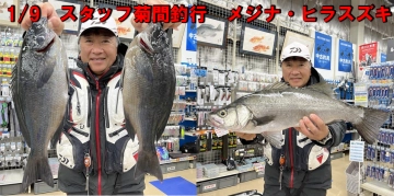 同じ釣魚の記事 イシグロ岡崎大樹寺店 1,007 view 寒グレシーズン突入!?尾鷲に磯釣り行って来ました! 寒グレ狙いで尾鷲に行って来ました!タナは2ヒロから3ヒロと浅め。寒シーズンどこ行ったー!? 釣行日 2024/01/31 釣行時間 06:00~14:00 釣場 尾鷲周辺 ポイント 桃頭島 タラエ 釣魚 メジナ(グレ) 釣り方 ウキ釣り(海) 釣果 メジナ(グレ)4尾 サイズ メジナ(グレ)最大37㎝ イシグロ伊東店 310 view スタッフ菊間 東伊豆堤防ウキフカセ釣り釣果情報【イシグロ伊東店】 短時間でしたが、深めのタナで良く釣れました。 釣行日 2024/01/30 釣行時間 14:00~17:00 釣場 東伊豆周辺 ポイント 東伊豆 堤防 釣魚 メジナ(グレ) 釣り方 ウキ釣り(海) 釣果 メジナ(グレ)16匹 サイズ メジナ(グレ)31~40㎝ イシグロ焼津店 690 view ☆東伊豆グレ釣り遠征☆青物ナブラ有り!! イワシ系のベイト多く、2B~3Bの仕掛けで表層を突破しましょう!前日にはヒラマサの釣果も! 釣行日 2024/01/26 釣行時間 12:00~16:30 釣場 東伊豆周辺 ポイント 釣魚 メジナ(グレ) 釣り方 ウキ釣り(海) 釣果 メジナ(グレ)4匹 サイズ メジナ(グレ)~34cm イシグロ伊東店 544 view スタッフ菊間 東伊豆堤防ウキフカセ釣り釣果情報【イシグロ伊東店】 キタマクラが多かったですが夕方にアタリが出ました。 釣行日 2024/01/25 釣行時間 11:30~17:00 釣場 東伊豆周辺 ポイント 東伊豆 堤防 釣魚 メジナ(グレ) 釣り方 ウキ釣り(海) 釣果 メジナ(グレ)8匹 サイズ メジナ(グレ)35~43㎝ イシグロ伊東店 459 view スタッフ菊間 東伊豆堤防ウキフカセ釣り釣果情報【イシグロ伊東店】 タナはやや深めで釣れました。 釣行日 2024/01/24 釣行時間 13:30~17:00 釣場 東伊豆周辺 ポイント 東伊豆 堤防 釣魚 メジナ(グレ) 釣り方 ウキ釣り(海) 釣果 メジナ(グレ)10匹 サイズ メジナ(グレ)32~41㎝ 磯フィッシングマイスター 小郷原將人 1,243 view メジナを求めて西伊豆田子の沖磯へ行って来ました!! 水温19℃台と非常に高い水温で魚の活性が高く楽しめました! エサ取りも元気なのでコマセは多めに持っていきましょう!! 釣行日 2024/01/22 釣行時間 06:30~15:00 釣場 西伊豆周辺 ポイント 田子沖磯 釣魚 メジナ(グレ)・アイゴ・ムロアジ 釣り方 ウキ釣り(海) 釣果 メジナ(グレ)6匹、アイゴ3匹、ムロアジ5匹 サイズ メジナ(グレ)30~35㎝、アイゴ40㎝前後、ムロアジ30㎝前後 水口 965 view オオモンハタ初ゲット♪Σ(-ω-;)ミニモン? 全部小型、初詣で運気アップじゃ 釣行日 2024/01/22 釣行時間 06:00~08:00 釣場 新居弁天海釣公園 ポイント 小型は全部リリース 釣魚 オオモンハタ・カサゴ・クロダイ・メジナ(グレ) 釣り方 落とし込み釣り 釣果 オオモンハタリリース、カサゴリリース、クロダイリリース、メジナ(グレ)リリース サイズ オオモンハタミニ、カサゴミニ、クロダイミニ、メジナ(グレ)ミニ イシグロ伊東店 708 view スタッフ菊間 東伊豆堤防メジナ釣果情報!【イシグロ伊東店】 水温15℃で渋く、また14時過ぎから強風で早上がりしました。 釣行日 2024/01/18 釣行時間 12:30~14:30 釣場 東伊豆周辺 ポイント 東伊豆 堤防 釣魚 メジナ(グレ) 釣り方 ウキ釣り(海) 釣果 メジナ(グレ)2匹 サイズ メジナ(グレ)40㎝ イシグロ名東引山店 778 view 冬の寒グレを求めて~紀伊長島~ ヌカパンは使いやすさ抜群!!!!近日入荷予定!!!! 釣行日 2024/01/18 釣行時間 06:30~13:00 釣場 紀伊長島周辺 ポイント 釣魚 メジナ(グレ)・ブダイ 釣り方 その他 釣果 メジナ(グレ)5、ブダイ2 サイズ メジナ(グレ)22㎝~18㎝、ブダイ40㎝ イシグロ沼津店 1,460 view 東伊豆メジナ釣れてます! 使用したエサはグレパワーV9徳用と爆寄せグレです!食ってくるタナが少し深いのでじっくり待ちましょう! 釣行日 2024/01/18 釣行時間 09:00~16:00 釣場 東伊豆周辺 ポイント 釣魚 メジナ(グレ) 釣り方 ウキ釣り(海) 釣果 メジナ(グレ)6匹 サイズ メジナ(グレ)25~37cm イシグロ伊東店 705 view スタッフ菊間 西伊豆田子沖提釣果! いつもお世話になる万集丸の藤井船長さんです。 この日は当潮で、エサ取りも全くおらず激渋でした。 釣行日 2024/01/17 釣行時間 07:00~14:30 釣場 西伊豆周辺 ポイント 西伊豆 田子沖提 釣魚 メジナ(グレ) 釣り方 ウキ釣り(海) 釣果 メジナ(グレ)3匹 サイズ メジナ(グレ)30~42㎝ イシグロ御殿場店 476 view 御殿場店 入間磯メジナ 日吉丸 食いが浅く苦戦しましたが、何とか釣れました。 タナはエサ取りが多いので、5m(竿1本)で安定しました。 水温17.6℃ 小型でしたが魚の引きは強烈でした。 釣行日 2024/01/17 釣行時間 07:00~14:00 釣場 その他 ポイント 入間磯 三ッ根 釣魚 メジナ(グレ)・イサキ 釣り方 ウキ釣り(海) 釣果 メジナ(グレ)3枚、イサキ1匹 サイズ メジナ(グレ)32~37cm、イサキ32cm イシグロ駿東柿田川店 537 view 南伊豆中木沖磯行ってきました‼ 喰いが浅いので、全遊動で狙った方がアタリが増えます。 釣行日 2024/01/17 釣行時間 06:30~15:00 釣場 その他 ポイント 釣魚 メジナ(グレ) 釣り方 ウキ釣り(海) 釣果 メジナ(グレ)15匹 サイズ メジナ(グレ)41㎝ イシグロ伊東店 244 view スタッフ菊間 東伊豆堤防メジナ釣果情報!【イシグロ伊東店】 昼からの釣りでしたが、14時過ぎに烈風