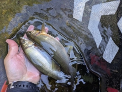 金曜日に降った雨でコーヒー色土曜日は柳色日曜日は澄み元に戻るのがはやい多分ダムで水をとめてるのかな雨の中でしたので濁りの時に良いピンク系澄みの時の黒系にしました。土曜日が暖かく日曜日はかなり冷え込んでいたので渋かったです跳ねはあったのですが鮎同士がぶつかって跳ねてるだけでした。