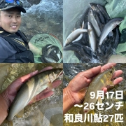 同じ釣魚の記事 イシグロ鳴海店 85 view 長良川アユルアー釣り、サイズ・数共に好調です!2025年10月23日釣行 今回もDUOの流鮎が大活躍!11月までは長良川鮎ルアー釣りは楽しめます! 釣行日 2025/10/23 釣行時間 10:00~16:00 釣場 長良川 ポイント 釣魚 アユ 釣り方 鮎ルアー 釣果 アユ16匹 サイズ アユ10cm~18cm イシグロ豊川店 112 view 豊川店 シーズン終盤!まだまだ鮎釣り楽しめます!! そろそろ納竿の時期ですが、小気味よいあたりに痺れてみませんか! 釣行日 2025/10/19 釣行時間 10:00~15:00 釣場 気田川 ポイント 支流杉川 釣魚 アユ 釣り方 友釣り 釣果 アユ15匹 サイズ アユ15~19㎝ 春夏冬中 157 view 塩焼きサイズを求めて 今年最後の鮎かな〜 てんちょ〜、いつも適切なアドバイスありがとうございました。 2025年の鮎楽しめました♪ 来年も宜しくお願いします! 釣行日 2025/10/19 釣行時間 10:00~16:00 釣場 長良川 ポイント 釣魚 アユ 釣り方 鮎ルアー 釣果 アユ 二桁 サイズ アユ 塩焼きサイズ 春夏冬中 17 view 塩焼きサイズを求めて 増水、曇り、雨 難しい〜!明日も行ってこ 釣行日 2025/10/18 釣行時間 13:00~16:30 釣場 長良川 ポイント 釣魚 アユ 釣り方 鮎ルアー 釣果 アユ 一桁 サイズ アユ 小塩焼きサイズ イシグロ豊田店 148 view 根尾川大鮎で納竿(仮) 10月なのにものすごい人!パッと見釣れそうな場所は大体叩かれているので、竿抜けを狙いましょう! 釣行日 2025/10/13 釣行時間 08:00~15:00 釣場 その他 ポイント 岐礼 釣魚 アユ 釣り方 友釣り 釣果 アユ25匹 サイズ アユ~26㎝ 春夏冬中 137 view 塩焼きサイズを求めて 塩焼きサイズ釣れて良かった! 後何回出来るかな 釣行日 2025/10/13 釣行時間 10:00~16:30 釣場 長良川 ポイント 釣魚 アユ 釣り方 鮎ルアー 釣果 アユ 二桁 サイズ アユ 塩焼きサイズ abewara2025 524 view 安倍川・藁科川アユ最終コーナー‼️ 今日は下流でやるつもりでしたが、砂煙が舞うほどの爆風のため藁科川中流部の青の木エリアに移動。青の木でも風が強かったですが、なんとか釣りができました。良い感じに釣れるところもあれば、7連続バラシするなど心へし折られそうになりました😅9時から15時まで56匹でした。多分掛けるだけなら80本近く掛けてます。今日は流れのあるところでやったので、型が良かったです。MAX80gくらいかと。チャラもやりましが、15センチ前後が多いです。 台風はあまり影響無さそう⭕️最終コーナーの安倍川、藁科川ともに絶好調です!最後の入れがかり楽しんでくださいね!美味しい鮎を釣りに、ぜひお越しください⭕️ 釣行日 2025/10/07 釣行時間 09:00~15:00 釣場 安倍藁科川 ポイント 中流部 釣魚 アユ 釣り方 友釣り 釣果 アユ56匹 サイズ アユ13-22㎝ イシグロ豊田店 156 view 【九頭竜勝山】終盤の勝山でまさかの爆! 細い支流に入りひたすら泳がせ!時合に入ると時速20匹のペースも! 釣行日 2025/10/02 釣行時間 07:00~15:00 釣場 九頭竜川 ポイント 勝山 釣魚 アユ 釣り方 友釣り 釣果 アユ71匹 サイズ アユ17~23cm 鮎フィッシングマイスター 鈴木祐也 201 view 鮎釣り終盤シーズン!まだまだ好調な長良川郡上。 浅場を泳がせで狙う事で数が伸ばせています。キレイな鮎も多く、まだまだ楽しむことができそうです。 釣行日 2025/09/30 釣行時間 10:00~16:30 釣場 長良川 ポイント 郡上管轄 釣魚 アユ 釣り方 友釣り 釣果 アユ39匹 サイズ アユ~22cm イシグロ伊東店 238 view 【速報】本日スタッフ菊間 狩野川鮎釣果情報! 狩野川鮎友釣り 28㎝の鮎まで釣れました。 釣行日 2025/09/30 釣行時間 09:30~16:00 釣場 狩野川 ポイント 狩野川支流大見川 釣魚 アユ 釣り方 友釣り 釣果 アユ21匹 サイズ アユ21cm~28cm イシグロ豊川店 127 view 豊川店 シーズン終盤でも楽しめる安倍藁科川の友釣り! 海産系の鮎を放流しているのでシーズン後半まで十分楽しめます♪今回の「中河内川」では背掛DNAも放流しているのでサイズ以上に引っ張りまわされてくださいね♪ 釣行日 2025/09/28 釣行時間 09:45~16:00 釣場 安倍藁科川 ポイント 中河内川 釣魚 アユ 釣り方 友釣り 釣果 アユ34匹 サイズ アユ21~13㎝ 春夏冬中 269 view 塩焼きサイズを求めて! 後何回出来るかな〜 先週はイカリ針でバラし多数、本日はヤナギで! 釣行日 2025/09/28 釣行時間 14:00~17:00 釣場 長良川 ポイント 釣魚 アユ 釣り方 鮎ルアー 釣果 アユ 一桁笑 サイズ アユ 塩焼きサイズ イシグロ伊東店 80 view スタッフ菊間 狩野川友釣り釣果情報! 良型のアユ釣りを堪能してきました! 釣行日 2025/09/25 釣行時間 10:00~16:20 釣場 狩野川 ポイント 釣魚 アユ 釣り方 その他 釣果 アユ11匹 サイズ アユ16cm~25.5cm 春夏冬中 109 view 塩焼きサイズを求めて! バラし多数! 針は新品!何故なのか 迷走中笑 釣行日 2025/09/23 釣行時間 11:00~16:30 釣場 長良川 ポイント 釣魚 アユ 釣り方 鮎ルアー 釣果 アユ 二桁 サイズ アユ 可愛いサイズ イシグロ西春店 41 view 2025.9/22 白川釣行 竿:ダイワ09銀影競技SPMT H90 (SMT穂先) 天井糸:フロロ1.0 水中糸: ダイワ 複合ライン メタコンポデュラ0.07 中ハリス直結 フロロ1.2(70㎝) ハナカン:7.5 掛け針 ダイワ:パワースピード7.5-本イカリ 8.0-3本イカリ 釣行日 202