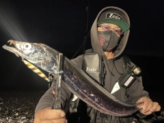 釣行日 2019/06/14 釣行時間 19:00~00:00 釣場 東海 > 静岡東部 > 沖・オフショア ポイント 田子の浦沖 釣り方 ジギング 釣魚 タチウオ 釣果 タチウオ4人で160 トップ70 サイズ タチウオ指2本〜5本