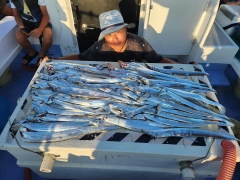 釣行日 2019/06/14 釣行時間 19:00~00:00 釣場 東海 > 静岡東部 > 沖・オフショア ポイント 田子の浦沖 釣り方 ジギング 釣魚 タチウオ 釣果 タチウオ4人で160 トップ70 サイズ タチウオ指2本〜5本