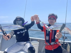 釣行日 2019/06/14 釣行時間 19:00~00:00 釣場 東海 > 静岡東部 > 沖・オフショア ポイント 田子の浦沖 釣り方 ジギング 釣魚 タチウオ 釣果 タチウオ4人で160 トップ70 サイズ タチウオ指2本〜5本