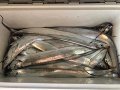 釣行日 2019/06/14 釣行時間 19:00~00:00 釣場 東海 > 静岡東部 > 沖・オフショア ポイント 田子の浦沖 釣り方 ジギング 釣魚 タチウオ 釣果 タチウオ4人で160 トップ70 サイズ タチウオ指2本〜5本