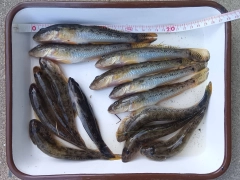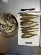 台風明けで、雨での濁りがあり、港や堤防の角にハゼが貯まっているようです。