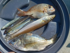 釣果 アジ5、カサゴ1、カワハギ14、シロギス1、ヒイラギ(ゼンメ・ネコマタ)2、ヘダイ1、イシダイ・イシガキダイ1