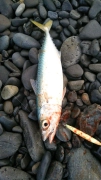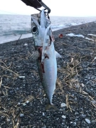 本命ソウダガツオが出ました!これはヒラソウダです。30cmほどでしょうか。