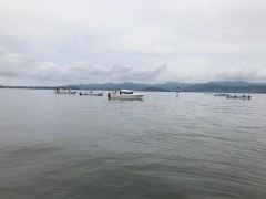 沖では鳥が旋回しており、時折近場でボイルも出ます。気配十分で期待していると、明るくなってきたところでウキが入りました。