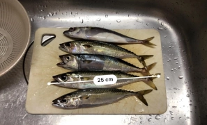 この時期はゴマサバが旬なので脂が乗って美味しいです。サバ折りをして大事に持って帰ります。