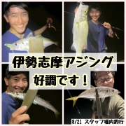 同じ釣魚の記事 イシグロ焼津店 333 view 焼津周辺アジングまだまだ好調! スナイプヘッド0.3g+バーニーにヒット!ただ巻きよりもフォール多めに好反応でした! 釣行日 2025/09/09 釣行時間 21:30~00:00 釣場 大井川・焼津周辺 ポイント 釣魚 アジ・ハタンポ 釣り方 アジング 釣果 アジ33匹、ハタンポ4匹 サイズ アジ10~13cm、ハタンポ10cm イシグロ沼津店 1,056 view 五目達成!激熱戸田係留船釣行!! 船サビキ、バチコン、泳がせなど様々な仕掛けで釣れました!! 釣行日 2025/09/09 釣行時間 17:00~22:00 釣場 沼津周辺 ポイント 戸田 福将丸様 釣魚 アジ・ソウダガツオ・ワラサ・ブリ・サバ 釣り方 船釣り 釣果 アジ沢山!、ソウダガツオ2匹、ワラサ・ブリ1匹、サバ沢山! サイズ アジ15cm前後、ソウダガツオ15cm程度、ワラサ・ブリ40cm程度、サバ15cm前後 初心者向け イシグロ浜松高林店 2,562 view 浜名湖ショアジギで青物釣れてます!!サビキも好調!! 20g前後のメタルジグに好反応です!!サビキはママカリサビキ、アジマッチピンクスキン5号がオススメ!! 釣行日 2025/09/09 釣行時間 04:00~10:00 釣場 新居弁天海釣公園 ポイント 新居海釣り公園 釣魚 アジ・ワラサ・ブリ 釣り方 ショアジギング 釣果 アジ、ワラサ・ブリ サイズ アジ12cm、ワラサ・ブリ35cm前後 イシグロフレスポ鈴鹿店 460 view 志摩周辺でアジ&アオリイカが釣れています! 赤下地のエギとできるだけ軽めのジグヘッドが必須です!! 釣行日 2025/09/08 釣行時間 00:00~04:30 釣場 伊勢・志摩周辺 ポイント 釣魚 アオリイカ・アジ・カマス 釣り方 エギング 釣果 アオリイカ2、アジ100匹超え、カマス2 サイズ アオリイカ、アジ、カマス イシグロ津高茶屋店 276 view トータル100匹以上⁉アジング&エギング釣行IN南伊勢 ナイトエギングには赤テープは必須!ボルカノロックや軍艦グリーン当店在庫豊富にございます! 釣行日 2025/09/08 釣行時間 00:00~04:00 釣場 伊勢・志摩周辺 ポイント 釣魚 アオリイカ・アジ・カマス 釣り方 アジング 釣果 アオリイカ2杯、アジ100匹オーバー、カマス2匹 サイズ アオリイカ胴長15cm、アジ~20cm、カマス~20cm 初心者向け ソルトショアルアー(静岡エリア)フィッシングマイスター 高橋ダイキ 252 view 浜名湖アジングでアジ、セイゴ釣れてます!! ジグヘッドは0.6~0.8gがオススメ ヒットルアー DUOバーニー 釣行日 2025/09/07 釣行時間 20:00~21:00 釣場 新居弁天海釣公園 ポイント 新居海釣り公園 釣魚 アジ・シーバス 釣り方 アジング 釣果 アジ、シーバス サイズ アジ12cm前後、シーバス20cm前後 イシグロ津高茶屋店 1,282 view 【70本超え】伊勢志摩方面、アジング好調です! 連発する時はダイワ 月下美人ソードビーム1.7がズレにくく快適! 釣行日 2025/09/03 釣行時間 01:00~04:00 釣場 伊勢・志摩周辺 ポイント 釣魚 アジ 釣り方 アジング 釣果 アジ70本以上 サイズ アジ~20cm 水口 1,225 view 浜名湖アジ爆&コウイカ絶好調♪ヾ(≧∇≦)チャス☆ コウイカ攻略完了?アジモリモリ絶好調♪ 釣行日 2025/09/02 釣行時間 04:00~06:12 釣場 新居弁天海釣公園 ポイント エサ巻スッテで底をズル引きしちゃえ☆ 釣魚 コウイカ・アジ・シーバス 釣り方 エギング 釣果 コウイカ3パイ、アジたくさん、シーバスそこそこ サイズ コウイカコロッケ、アジナイス、シーバス~25㎝ イシグロ西春店 352 view 秋の敦賀新港も好調継続中! アジは日が昇ると渋くなります。マズメに勝負しましょう! 釣行日 2025/09/01 釣行時間 05:00~08:30 釣場 敦賀新港 まるやま海遊パーク ポイント 釣魚 アジ・サンバソウ 釣り方 サビキ釣り 釣果 アジ20匹、サンバソウ入れ食い サイズ アジ~10cm、サンバソウ~15cm 初心者向け ソルトショアルアー(静岡エリア)フィッシングマイスター 高橋ダイキ 387 view 浜名湖アジング釣れてます!! ジグヘッドは0.6g~0.8gがオススメ!! ワームは1.5インチ前後がGOOD! 釣行日 2025/08/31 釣行時間 21:00~22:00 釣場 新居弁天海釣公園 ポイント 新居海釣り公園 釣魚 アジ 釣り方 アジング 釣果 アジ サイズ アジ15cm ピロピロ笛 623 view そろそろ秋 アジがサイズアップ。数も多いです。ピンクサビキ4号。 釣行日 2025/08/28 釣行時間 14:00~18:00 釣場 焼津親水公園ふぃしゅーな ポイント 釣魚 アジ・サッパ・メジナ(グレ) 釣り方 サビキ釣り 釣果 アジ34、サッパ4、メジナ(グレ)1 サイズ アジ5〜15cm、サッパ10cm、メジナ(グレ)20cm イシグロ磐田店 1,973 view 遠州サーフアジングでデカアジGET! ジェットローミッド35gにリーダー3号1mを付けてジグヘッドワームをセットして釣りました!サーフアジングが今熱い! 釣行日 2025/08/27 釣行時間 04:00~05:30 釣場 遠州灘海岸 ポイント 遠州サーフ 釣魚 アジ 釣り方 サーフルアー 釣果 アジ1匹 サイズ アジ37㎝ 戸松慶輔 65 view 迫浦の日乃出屋でイカダ釣り! サビキ、胴付き、ルアーなど色々な釣り方で夏の筏釣りを楽しんできました。 サビキでは小アジがポロポロ釣れていましたが、突然30cmクラスのメガアジが混じり3連発! そこから胴付き仕掛けに変えて、速釣ダンゴを入れて魚を寄せてから釣り続けているとベラやら小アジなどのゲストに加えて、僕自身はじめましてのタカ