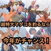 同じ釣魚の記事 イシグロ岡崎大樹寺店 2,748 view いよいよ伊勢湾のタコ開幕か~!?鬼崎で今期トップ釣果!!★イシグロ岡崎大樹寺店 今期厳しい釣果が続いていましたが~いよいよタコ開幕かも~っ!!? 釣行日 2023/07/11 釣行時間 06:00~10:00 釣場 沖・オフショア ポイント 鬼崎漁協 遊漁船 釣魚 タコ 釣り方 タコテンヤ・エギ 釣果 タコ4人で17杯 サイズ タコ~2キロ イシグロ名東引山店 1,277 view 夏だ!!!伊勢湾タコ釣り!!!出ればデカい!? 匂いがキーポイントでした!ノリノリタコライダーとタコ釣りボールは必須です!!!!(^_-)-☆ 釣行日 2023/06/27 釣行時間 05:30~12:30 釣場 沖・オフショア ポイント 釣魚 タコ 釣り方 タコテンヤ・エギ 釣果 タコ5杯 サイズ タコ~3キロ イシグロ岡崎大樹寺店 486 view 怪物クラス出現中!デカいタコ釣るなら今がチャンス! IN石川丸 タコエギはフラッシュブーストで常にアピールできるシマノ タコマスターがオススメです! 釣行日 2023/06/26 釣行時間 05:30~12:30 釣場 沖・オフショア ポイント 釣魚 タコ 釣り方 タコテンヤ・エギ 釣果 タコ4杯 サイズ タコ最大3.1kg イシグロ中川かの里店 790 view 伊勢湾タコゲーム!つれればキロオーバー確実⁉ エギはTsulinoのタコエギがオススメ!シマノタコマスターFBもおススメですよ!!釣れれば大物確実なのでPEは3号♪ 釣行日 2023/06/26 釣行時間 05:20~13:00 釣場 沖・オフショア ポイント 釣魚 タコ 釣り方 タコテンヤ・エギ 釣果 タコ4匹 サイズ タコ40cmくらい イシグロ鳴海店 482 view 釣れればデカい!!タコ釣りへ行ってきました! イシグロ鳴海店 今年は数は出ませんが釣れればほとんどキロ超えです。 釣行日 2023/06/26 釣行時間 05:30~12:30 釣場 沖・オフショア ポイント 石川丸様 師崎、伊良湖沖 釣魚 タコ 釣り方 タコテンヤ・エギ 釣果 タコ船中5杯 サイズ タコ~3.2kg イシグロ半田店 665 view 巨大タコを求めてタコ釣りへ!IN石川丸さん 師崎港石川丸様にてタコ釣り!3kgオーバーも釣れました! 釣行日 2023/06/26 釣行時間 05:30~12:30 釣場 沖・オフショア ポイント 釣魚 タコ 釣り方 船釣り 釣果 タコ5匹 サイズ タコ~3.1kg イシグロ三河安城店 264 view デカ蛸乱舞♪【夏蛸シーズン到来】IN石川丸☆イシグロ知立店☆ 最大3.2㌔のBIGサイズも登場!!TsulinoタコのエギやタコマスターFBでヒット♪ 釣行日 2023/06/26 釣行時間 05:30~12:30 釣場 沖・オフショア ポイント 釣魚 タコ 釣り方 船釣り 釣果 タコ~1杯 サイズ タコ~3.2㌔ 船(愛知エリア)フィッシングマイスター 中村瑞希 760 view [デカタコ!]今年のタコはデカい!大型クラーケンを狙うなら今がチャンス!in石川丸[船FMなかむ~] 今年のタコはデカい!今回は師崎港石川丸さまでデカタコを狙いに行ってきました♪Tsulinoタコのエギ&シマノタコマスターFBで3.1kgのデカタコGET! 釣行日 2023/06/26 釣行時間 06:00~12:00 釣場 沖・オフショア ポイント 釣魚 タコ 釣り方 船釣り 釣果 タコ5匹 サイズ タコ~3.1kg イシグロ岡崎大樹寺店 743 view 速報!巨大マダコ登場~重量感ハンパないっ!!in石川丸★イシグロ岡崎大樹寺店 巨大マダコ釣るなら今っ! 釣行日 2023/06/26 釣行時間 06:00~12:00 釣場 沖・オフショア ポイント 師崎港出船 石川丸 釣魚 タコ 釣り方 船釣り 釣果 タコ船中5杯 サイズ タコ~3キロ イシグロ岡崎若松店 4,280 view 鬼崎漁協遊漁船でタコ釣り!岡崎若松店 常滑周辺でのタコ釣りが開幕!!今年は少し遅れているようなので今後に期待ですね! 釣行日 2023/06/20 釣行時間 06:00~10:00 釣場 沖・オフショア ポイント 釣魚 タコ 釣り方 船釣り 釣果 タコ0 サイズ タコ0 イシグロ鳴海店 705 view タコ釣り始まりました!in大進丸 イシグロ鳴海店 タコエギのカラーは複数持っていきましょう! 釣行日 2023/06/19 釣行時間 04:30~12:30 釣場 沖・オフショア ポイント 釣魚 タコ 釣り方 船釣り 釣果 タコ1杯 サイズ タコ600g前後 イシグロ岐阜店 1,456 view タコ釣り開幕!クリンチフラッシュブーストで連発!! サイズが小さい時期は全傘のカンナがオススメ!ポイントによって使い分けましょう! 釣行日 2023/06/14 釣行時間 05:00~11:00 釣場 沖・オフショア ポイント 釣魚 タコ・ワラサ・ブリ 釣り方 タコテンヤ・エギ 釣果 タコ29杯、ワラサ・ブリ3匹 サイズ タコ~700g、ワラサ・ブリ~85㎝ イシグロカインズモール彦根店 2,084 view 兵庫県明石市二見のまつもと丸さんにて、船タコ釣りに行ってきました! 兵庫県明石市二見より出船しているまつもと丸さんでの釣果。当日は風と潮の流れが強かったほか、タコエギはグリーン系のカラーに反応が良かった。オモリは50号を使用。 釣行日 2023/06/09 釣行時間 05:00~12:00 釣場 その他 ポイント 釣魚 タコ 釣り方 タコテンヤ・エギ 釣果 タコ3~4杯 サイズ タコ最大1.2kg イシグロ広報部 13,036 view 浜名湖タコ開幕!タコ釣りセット仕掛けでサクッと釣れます♪ Tsulino:タコのエギセットを使用!!エギは2個付けが基本です★ 釣行日 2023/05/18 釣行時間 18:00~18:30 釣場 弁天島海浜公園 ポイント 釣魚 タコ 釣り方 タコテンヤ・エギ 釣果 タコ1杯 サイズ タココブシサイズ あらきんぐ 1,122 view 湾内でもキスかかるようになってきました キス狙いで底漁って