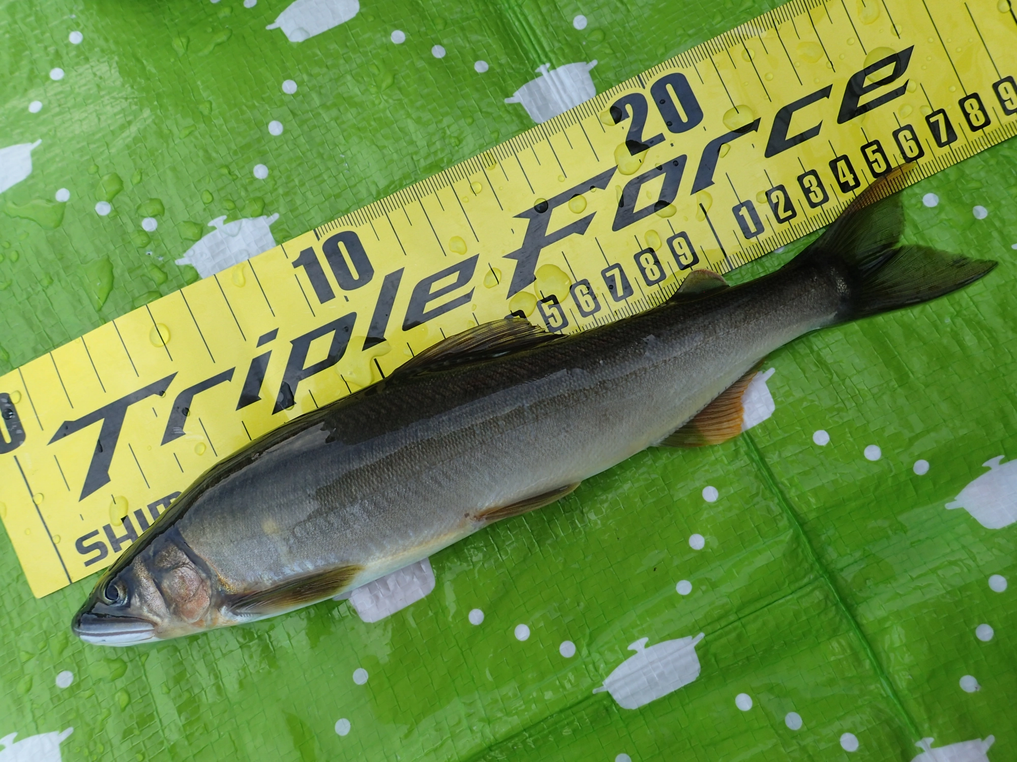 再び昨日のポイントへ戻ると22~24cmの鮎が忘れたころに掛かる感じでした。