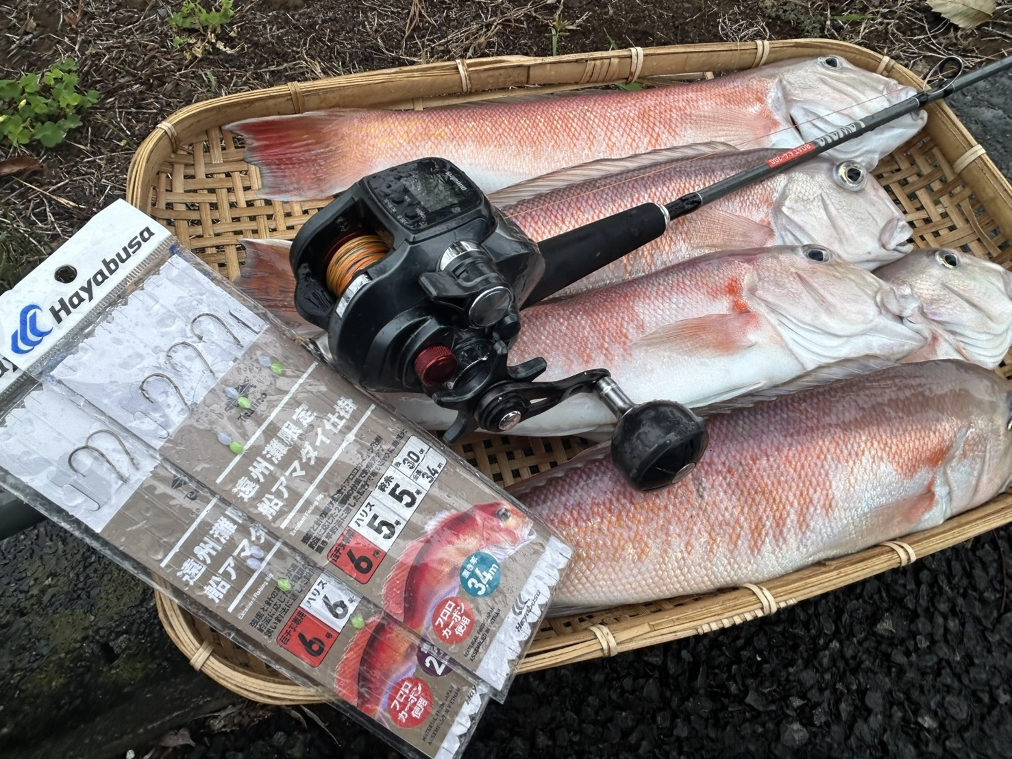 同じ釣魚の記事 NEW イシグロ静岡中吉田店 63 view 10/1 2025シロアマダイシーズン開幕♪ @大井川港藤丸さん Tsulinoで高級魚が狙える!仕掛は焼津港興栄丸大アマダイ仕掛(Tsulino)、エサはTsulinoケイムラホタルイカ。曇りの中、仕掛のルミックスダンサーとケイムラホタルイカで強烈アピール!! 釣行日 2025/10/01 釣行時間 06:30~10:00 釣場 沖・オフショア ポイント 釣魚 アマダイ 釣り方 船釣り 釣果 アマダイ1 サイズ アマダイ中型 イシグロバイヤー 120 view 富山湾で高級魚アカムツ釣り♪【岩瀬漁港 大将軍丸】 水深は100m前後、おもりは60~80号なので、ライトタックルでOK。胴付き1本針でエサはホタルイカを使用。 釣行日 2025/09/21 釣行時間 05:00~12:00 釣場 北陸 ポイント 富山湾 岩瀬漁港出船 大将軍丸様 釣魚 アカムツ・アマダイ・カサゴ 釣り方 船釣り 釣果 アカムツ20匹、アマダイ1匹、カサゴ1匹 サイズ アカムツ~35cm、アマダイ30㎝、カサゴ35cm キャプテンK 76 view 哲遊丸にて釣行 イサキ、鰺は指示棚から仕掛け分落としてコマセまいて指示棚で待つと掛かります。仕掛けはケイムラのハリス2.5号にオキアミを一番下に付けたり、手返し重視でつけなかったりしました。取り込む際にはたも網必須です。白甘鯛はオキアミ、ケイムラホタルイカ、ゴールドアオイソメの3種類使いまして、一番の当たり餌はケイムラホタルイカとゴールドアオイソメです。誘い方は底を積極的に小突いてゆっくり上げたりしました。当たったらゆっくり聞き合わせした方が確実掛かります。仕掛けは3号ハリス仕掛けを5号、三本針に改造した仕掛けを使用しまして8匹釣れました。 釣行日 2025/05/28 釣行時間 06:30~13:20 釣場 沖・オフショア ポイント 浜名湖沖 釣魚 アジ・アマダイ・イサキ・イトヨリダイ 釣り方 船釣り 釣果 アジ6匹、アマダイ8匹、イサキ7匹目、イトヨリダイ1匹 サイズ アジ約25㎝~42㎝、アマダイ平均約30㎝、イサキ平均約35㎝、イトヨリダイ約25㎝ イシグロ津高茶屋店 58 view 【BONDS】紀伊長島沖のタイラバでアマダイ出た!!【イシグロ津高茶屋店】 当日は150gのタイラバにタナジグあいやータコカーリーケイムラシルバーとエコギア熟成タイラバアクアクワセフラップスリム赤エビの組み合わせが好反応でした! 釣行日 2025/05/20 釣行時間 06:00~11:30 釣場 沖・オフショア ポイント 釣魚 アマダイ・イトヨリ・アヤメカサゴ 釣り方 タイラバ 釣果 アマダイ3匹、イトヨリ1匹、アヤメカサゴ多数 サイズ アマダイ20cm~40cm、イトヨリ25cm、アヤメカサゴ20cm以下 キャプテンK 206 view 甘鯛、鰺釣り 哲遊丸にて甘鯛、太刀魚狙いに行きました。甘鯛はオキアミ、ケイムラホタルイカ、ゴールドイソメ、アオイソメを使いました。水深によっては80号、100号、120号を使います。誘い方は底を小突くと掛かります。太刀魚はジギングで狙いましたが激シブで釣れませんでした。ジグの指定は200グラム以上です。残り時間は鰺を狙いました。最初はサビキを使いましたが掛からず。吹き流しの鰺の2号ハリスを使い餌はオキアミを使いました。誘い方は指示棚から仕掛け分落とし、アミエビを巻きその分巻いて少し待った所、単発で3匹目掛かりました。 釣行日 2025/04/10 釣行時間 07:00~13:00 釣場 沖・オフショア ポイント 浜名湖沖、遠州灘沖 釣魚 アジ・アマダイ 釣り方 船釣り 釣果 アジ3匹、アマダイ1匹 サイズ アジ約26~40cm、アマダイ約45㎝ もっと見る