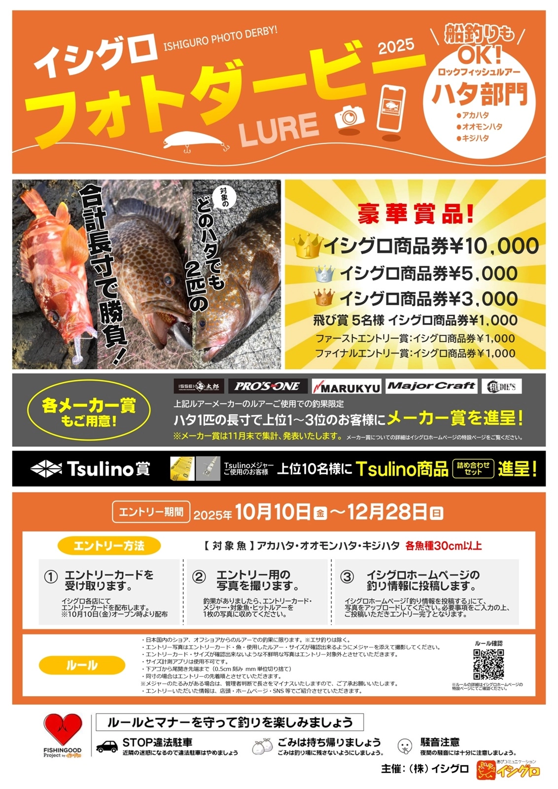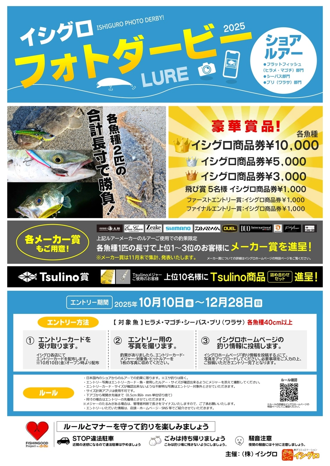 大型が釣れた際は、フォトダービーへのエントリーもよろしくお願い致します。