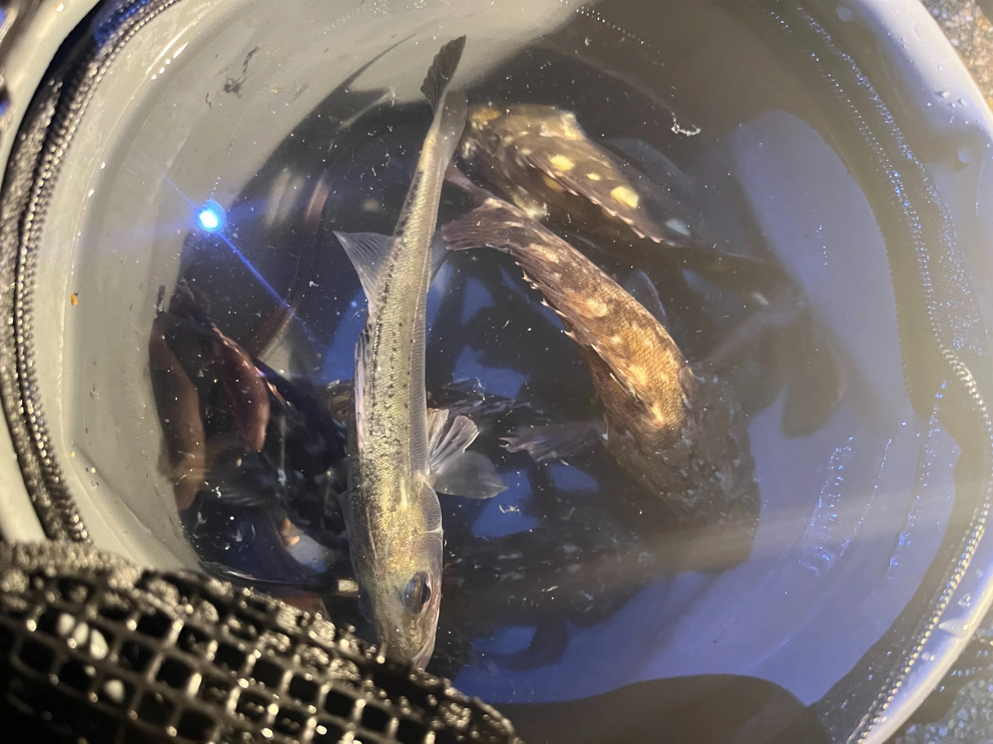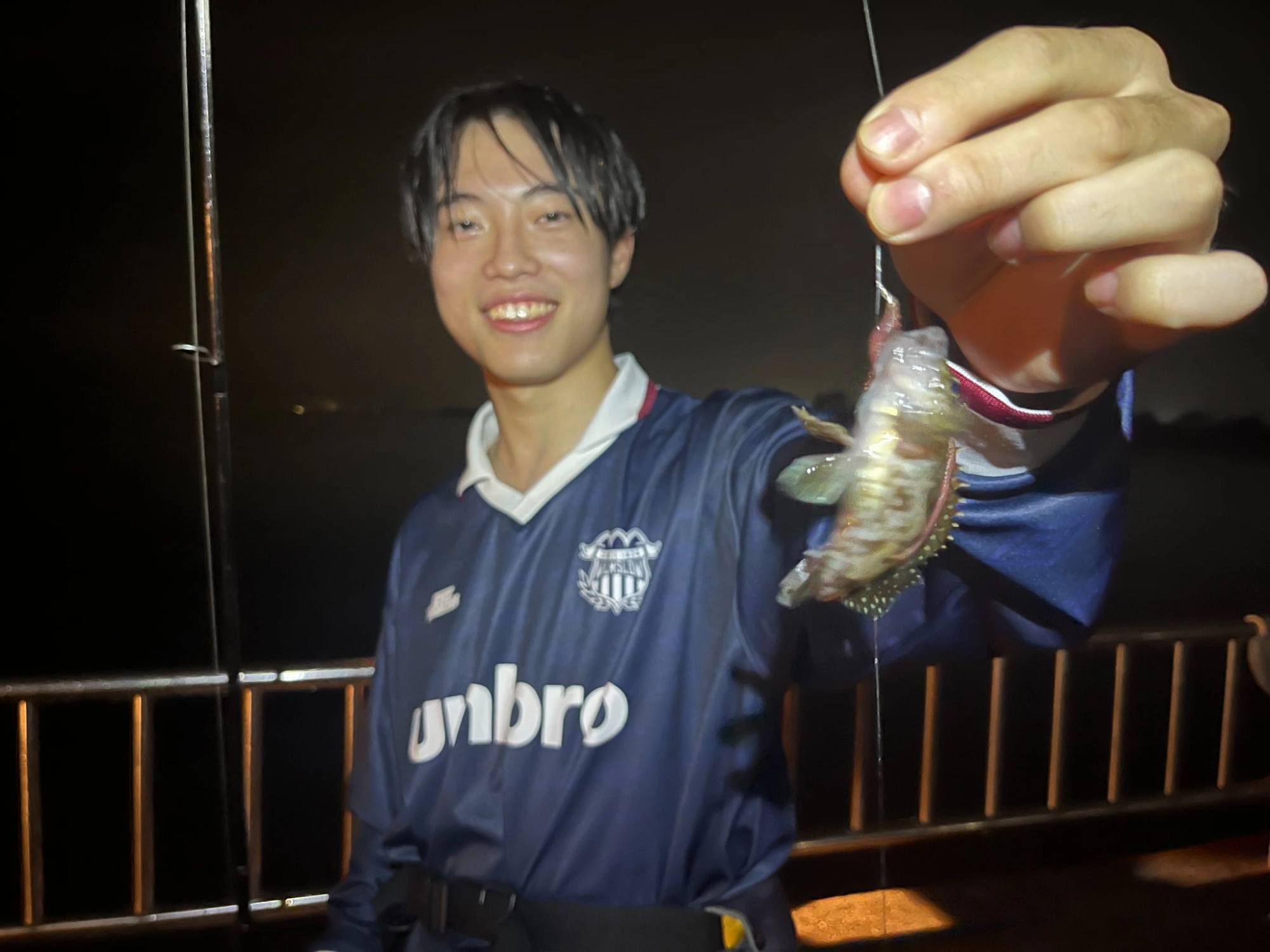 1匹目をゲット!カサゴです!夜釣りの定番ターゲットですね!