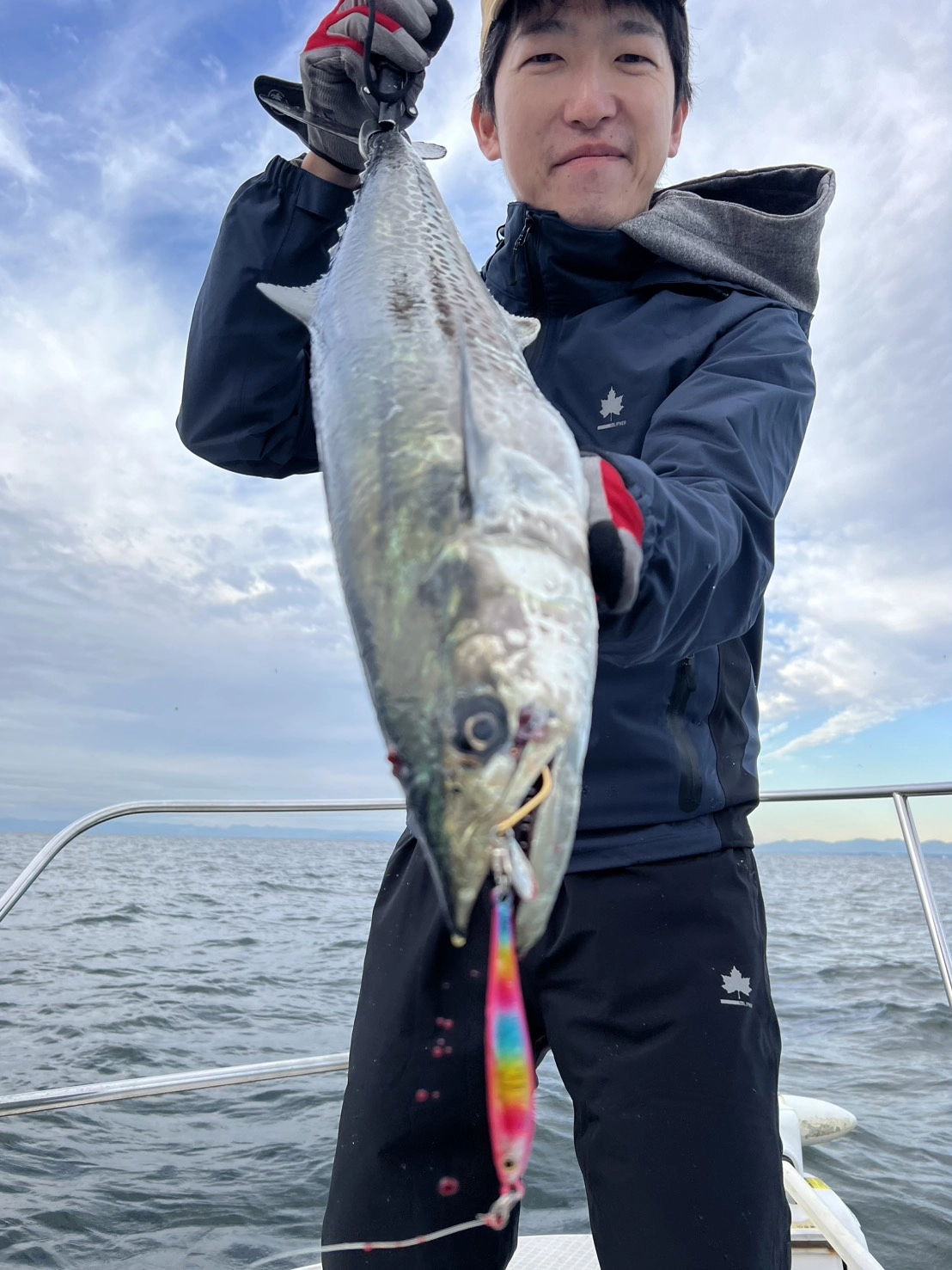 その後、スタッフ加藤もナイスサワラゲット!イッセイ サカナサカナスピンを使用。当日釣れた中でも最も大きなサワラでした。