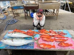 釣行日 2025/11/10 釣行時間 08:00~14:00 釣場 東海 > 静岡東部 > 沖・オフショア ポイント 伊東沖 釣り方 ロックフィッシュ 釣魚 アカハタ 釣果 アカハタ1匹 サイズ アカハタ35cm