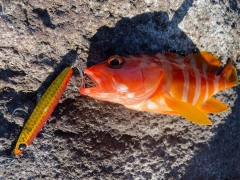 同じ釣魚の記事 イシグロ駿東柿田川店 1,420 view 沼津湾内でロックフィッシュ!! 5-10mの浅い場所でジグヘッド20gを使い、 一番反応が良かったカラーはアカキンでした!! 釣行日 2021/07/20 釣行時間 06:00~13:00 釣場 沼津周辺 ポイント 釣魚 アカハタ・オオモンハタ 釣り方 ロックフィッシュ 釣果 アカハタ10匹くらい、オオモンハタ10匹くらい サイズ アカハタ20~30cm、オオモンハタ20~30cm イシグロ伊東店 1,435 view 【イシグロ伊東店】伊東港達丸さん釣行!アカハタ好調です!! 場所によってクロー系とシャッドテールを使い分けるのが釣果UPのコツです! 釣行日 2021/07/19 釣行時間 05:00~10:00 釣場 伊東周辺 ポイント 伊東沖 釣魚 アカハタ・カサゴ・ムラソイ 釣り方 ロックフィッシュ 釣果 アカハタ11匹、カサゴ6匹、ムラソイ1匹 サイズ アカハタ30~37cm、カサゴ25~30cm、ムラソイ27cm ひろたか 776 view アカハタまつり〜! 短時間ながらアカハタ連発! 釣行日 2021/07/18 釣行時間 07:00~11:00 釣場 その他 ポイント 2馬力ゴムボート 釣魚 アカハタ・カサゴ・カワハギ 釣り方 テンヤ 釣果 アカハタ6、カサゴ2、カワハギ1 サイズ アカハタ27〜35、カサゴ27〜30、カワハギ25 1,203 view 南伊豆沖磯五目釣り楽しめます‼ 全遊動の仕掛けにアタリが多いです。 釣行日 2021/07/16 釣行時間 05:00~15:00 釣場 その他 ポイント 釣魚 アカハタ・メジナ・カサゴ・カンパチ・イサキ 釣り方 ウキ釣り(海) 釣果 アカハタ6匹、メジナ10匹、カサゴ1匹、カンパチ1匹、イサキ4匹 サイズ アカハタ35cm、メジナ30cm、カサゴ25cm、カンパチ30cm、イサキ25cm イシグロ名東引山店 3,234 view 三重県 高級魚シロアマダイ狙い釣行!!! シロアマダイは30号の吹き流し仕掛けとタイラバで狙いました!!ロックフィッシュは38g前後のおもりを用いたルアー釣りでヒット♬ 釣行日 2021/07/15 釣行時間 07:00~14:00 釣場 紀伊長島周辺 ポイント フィッシング光栄さん出船 釣魚 アマダイ・アカハタ・イトヨリダイ 釣り方 その他 釣果 アマダイ5匹、アカハタ10匹以上、イトヨリダイ10匹以上 サイズ アマダイ40㎝前後、アカハタ30㎝前後、イトヨリダイ40㎝前後 イシグロ伊東店 1,382 view 【イシグロ伊東店】地磯アカハタ好調に釣れてます! 夕方狙いの釣行。メタルジグで沖の魚を狙いました。まさかのスナップにフッキングしていました。 釣行日 2021/07/14 釣行時間 16:30~19:30 釣場 東伊豆周辺 ポイント 東伊豆地磯 釣魚 アカハタ 釣り方 ロックフィッシュ 釣果 アカハタ1匹 サイズ アカハタ32cm イシグロ伊東店 1,250 view 【イシグロ伊東店】地磯ロックフィッシュ好調です! 青物が不発だったのでメタルジグでアカハタを狙いました。メタルランナーリブート30gを使用。 釣行日 2021/07/09 釣行時間 05:00~09:00 釣場 東伊豆周辺 ポイント 東伊豆地磯 釣魚 アカハタ 釣り方 ロックフィッシュ 釣果 アカハタ2匹 サイズ アカハタ20~32cm イシグロ駿東柿田川店 1,496 view 沼津沖ハタ行ってきました。 ジグヘッドは14g~21g、ワームは3.5インチから4インチを使用。スイミングで狙うとわりと良型が掛かります。 釣行日 2021/06/30 釣行時間 06:00~10:30 釣場 沖・オフショア ポイント 釣魚 アカハタ・オオモンハタ 釣り方 オフショアキャスティング 釣果 アカハタ10匹以上、オオモンハタ4匹 サイズ アカハタ15cm~38cm、オオモンハタ20cm~30cm イシグロ沼津店 2,287 view 沼津ボート釣行 ハタゲームの季節到来!! 浅場は直リグ、深場はスイミングで釣りやすかったです。小型が多いものの大型のアタリもありました! 釣行日 2021/06/22 釣行時間 05:30~14:00 釣場 沖・オフショア ポイント 釣魚 アカハタ・オオモンハタ・カサゴ 釣り方 ロックフィッシュ 釣果 アカハタ多数、オオモンハタ多数、カサゴ1匹 サイズ アカハタ15~35cm、オオモンハタ15~30cm、カサゴ20cm イシグロ伊東店 1,652 view 【イシグロ伊東店】地磯ロックフィッシュ好調継続!良型アカハタが連発!! 夕方からの時合いを狙いました!メタルジグを使ったジカリグで広範囲を探りました。 釣行日 2021/06/21 釣行時間 17:00~19:30 釣場 東伊豆周辺 ポイント 東伊豆地磯 釣魚 アカハタ 釣り方 ロックフィッシュ 釣果 アカハタ4匹 サイズ アカハタ30~35cm イシグロ御殿場店 1,067 view イシグロ御殿場店 雲見港愛海丸さんで船ハタ釣り! プロズワン スパイニークローやデスアダーシャッドのオレンジ系カラーが良かったです。 釣行日 2021/06/19 釣行時間 07:00~14:00 釣場 沖・オフショア ポイント 釣魚 アカハタ 釣り方 ロックフィッシュ 釣果 アカハタ~10匹 サイズ アカハタ~36㎝ イシグロ駿東柿田川店 858 view ショアジグでアカハタをキャッチ!! 青物狙いで行きましたが、全然釣れなかった為、底をたたいているとヒットしました!根魚はアカキン必須です。 釣行日 2021/06/11 釣行時間 05:30~08:00 釣場 その他 ポイント 釣魚 アカハタ 釣り方 ショアジギング 釣果 アカハタ1匹 サイズ アカハタ約20㎝ イシグロ伊東店 1,462 view 【イシグロ伊東店】地磯ロックフィッシュ絶好調!良型連発です。 まだ底潮が冷たいのかカサゴが多いです。ベイトはキビナゴでした! 釣行日 2021/06/09 釣行時