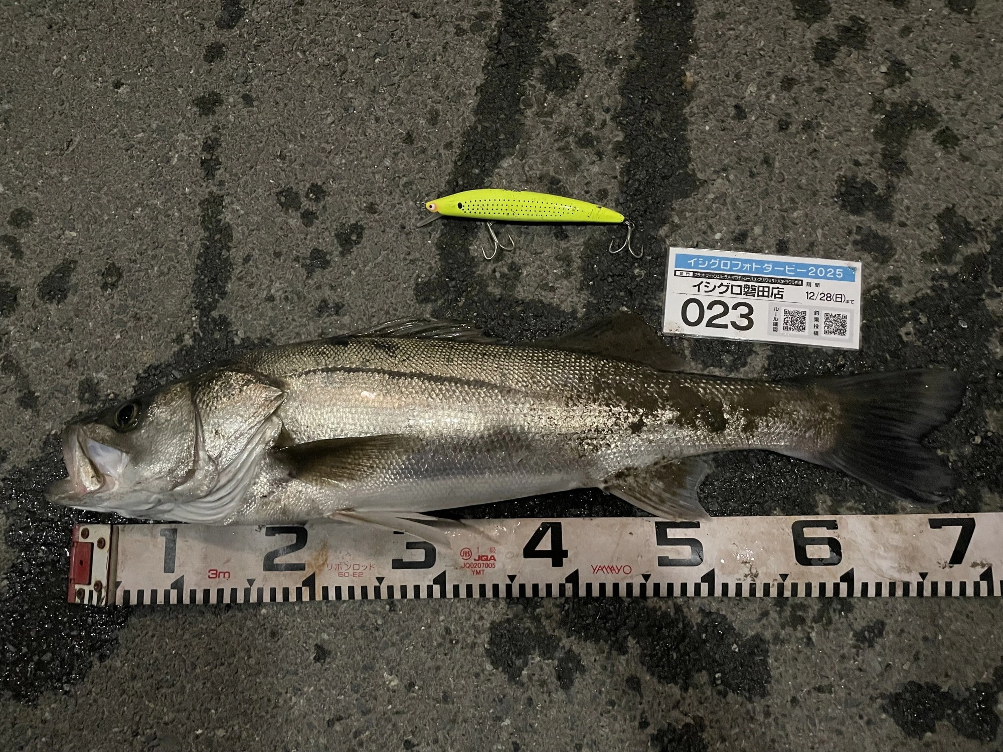 釣行日 2025/11/12 釣行時間 23:00~23:30 釣場 東海 > 静岡西部 > 遠州灘海岸 ポイント 天竜川河口付近 釣り方 シーバスルアー 釣魚 シーバス 釣果 シーバス1匹 サイズ シーバス63cm