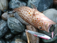 釣行日 2025/11/15 釣行時間 07:00~01:00 釣場 東海 > 静岡東部 > 西伊豆周辺 ポイント 土肥周辺 釣り方 ロックフィッシュ 釣魚 オオモンハタ 釣果 オオモンハタ1匹 サイズ オオモンハタ38cm